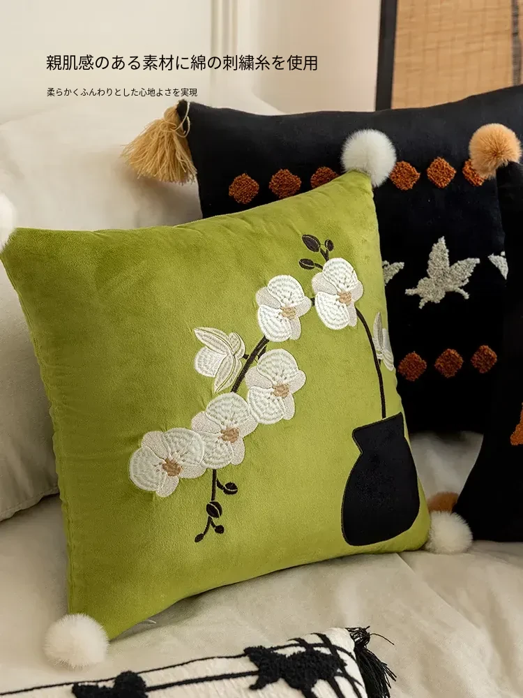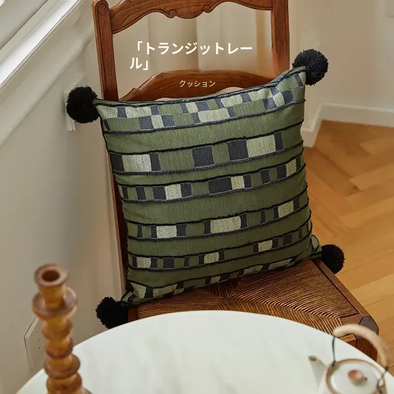 新中式高級軽奢グリーンクッション|フレンチスタイルと中国風の魅力が融合したリビングソファ用抱き枕|雰囲気を高める腰枕と背もたれクッション