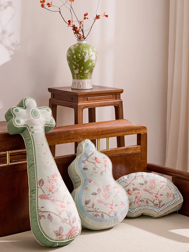 新中式スタイルのリビングソファ用クッション、福と禄が双全するユニークなひょうたん型クッション、国風レトロデザインの琵琶型バッククッションで、あなたの空間に優雅さを添えます!