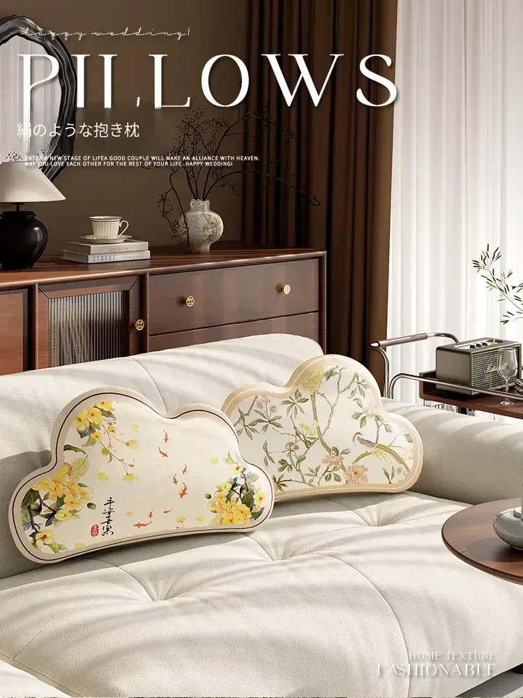 新中式デザインのユニークな雲形クッション|ラグジュアリーな雰囲気のリビングソファ用|フレンチスタイルのベッドヘッドピロー|中国風の魅力を引き立てる上質なアイテムです!