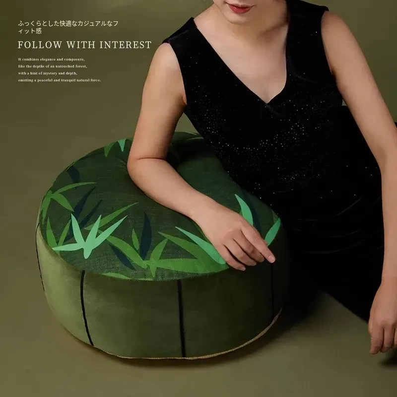 新中式デザインの竹製グリーン座布団 - フランス風の中国スタイル、軽やかな高級感を演出!バルコニーや寝室、リビングにぴったりなラウンドクッションで、くつろぎの空間を演出します。