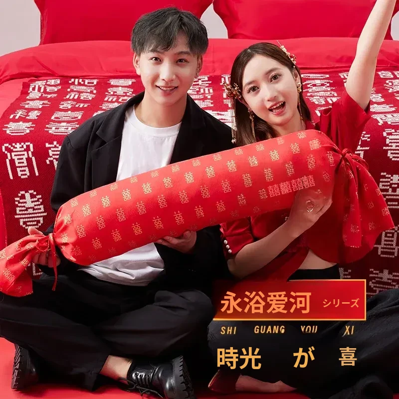 新中式デザインの喜びを感じる赤い長方形クッションカバー!結婚式や新居にぴったりな祝いの文字入りで、ベッドやソファの雰囲気を一層華やかに演出します。あなたの特別な瞬間を彩るアイテムです!
