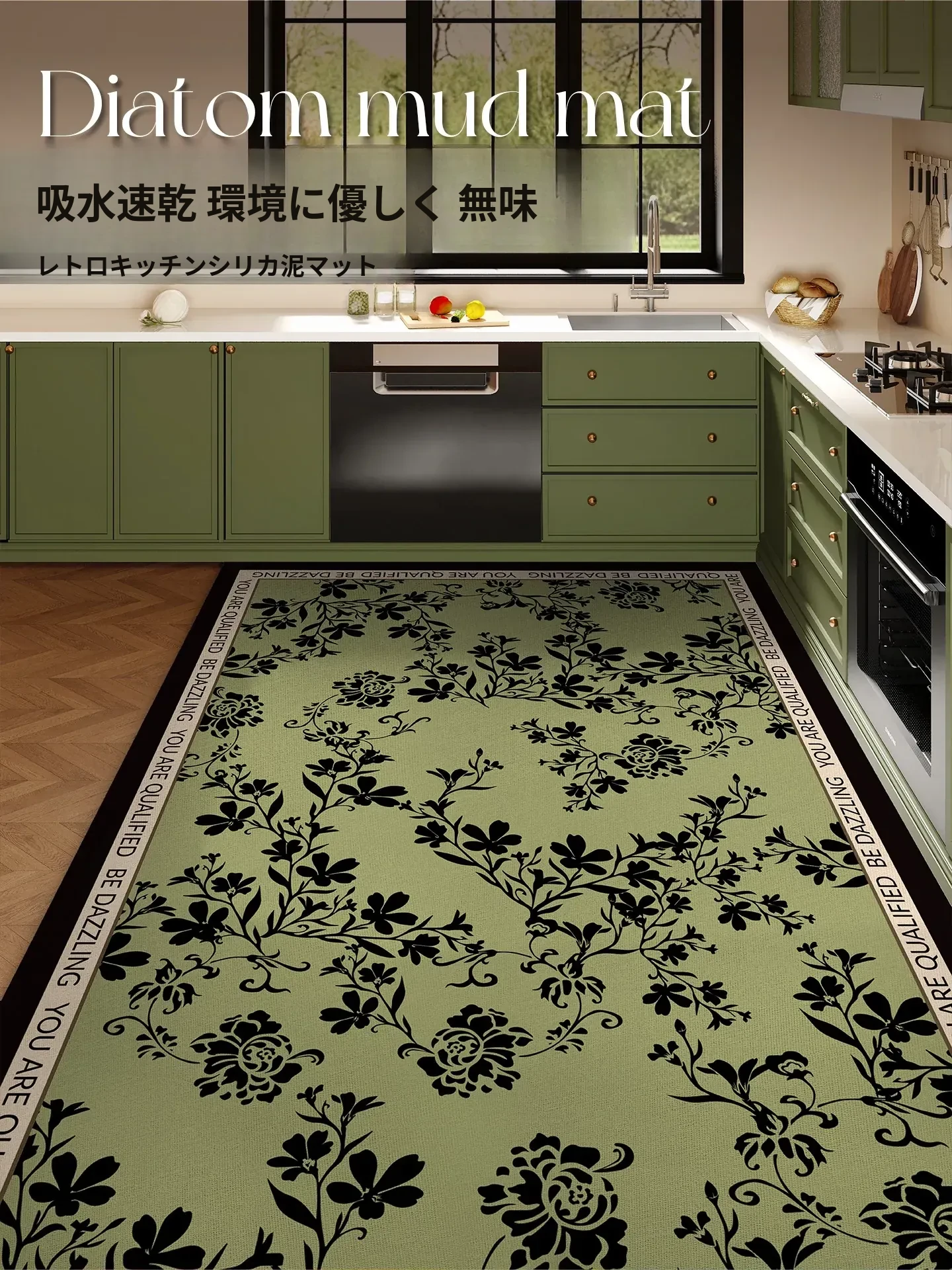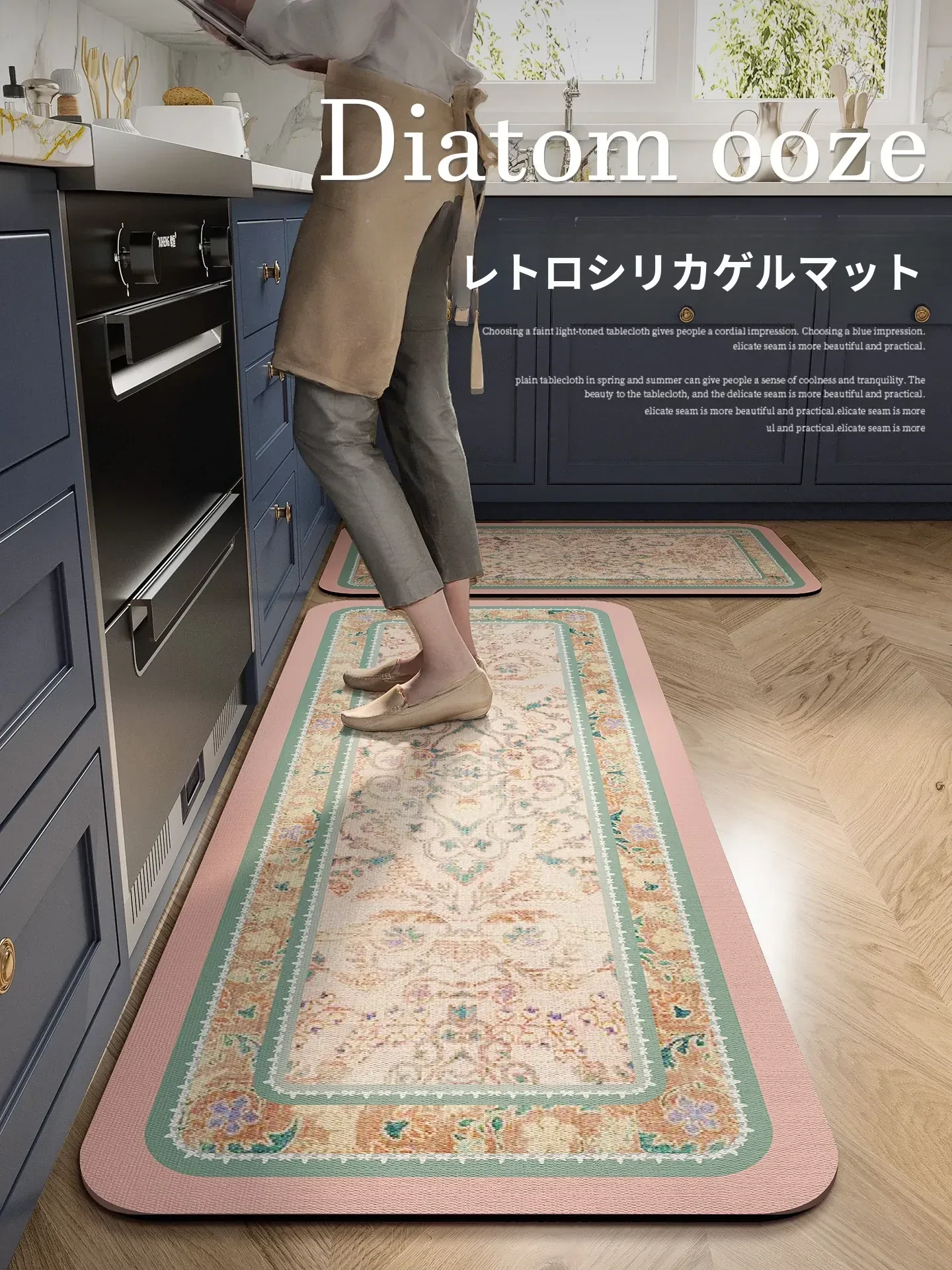 フランス風キッチン用シリカゲルマット|家庭用・耐摩耗・転倒防止|カット可能・無臭・スクエアデザイン|おしゃれで実用的な足元マット
