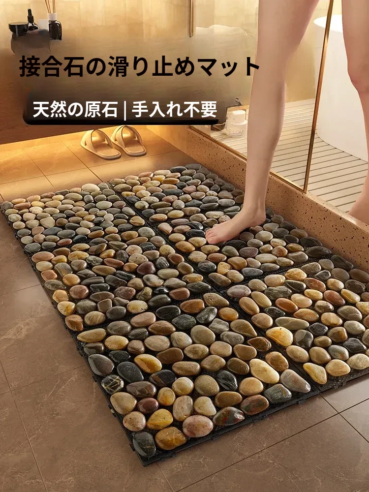 滑り止め効果抜群!おしゃれな天然石風バスルームマット - シャワールームやトイレの入り口に最適な足マッサージマット。高い排水性で安全性を確保し、快適なバスタイムを演出します!