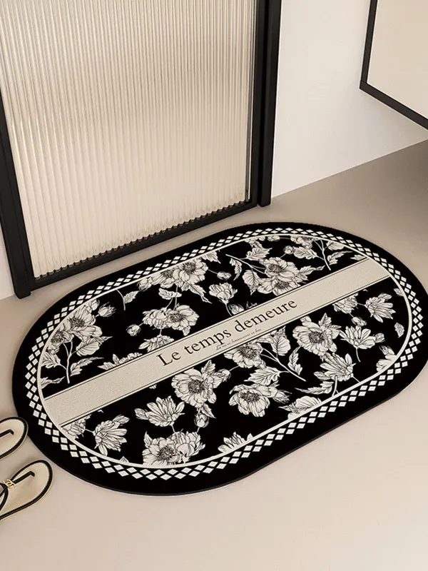 アメリカンスタイルのバスルームマット - 吸水・滑り止め機能付き!トイレや玄関にぴったりのフロッキーラグ。レトロなデザインで、おしゃれで快適な空間を演出します。あなたの家にぴったりの一枚!