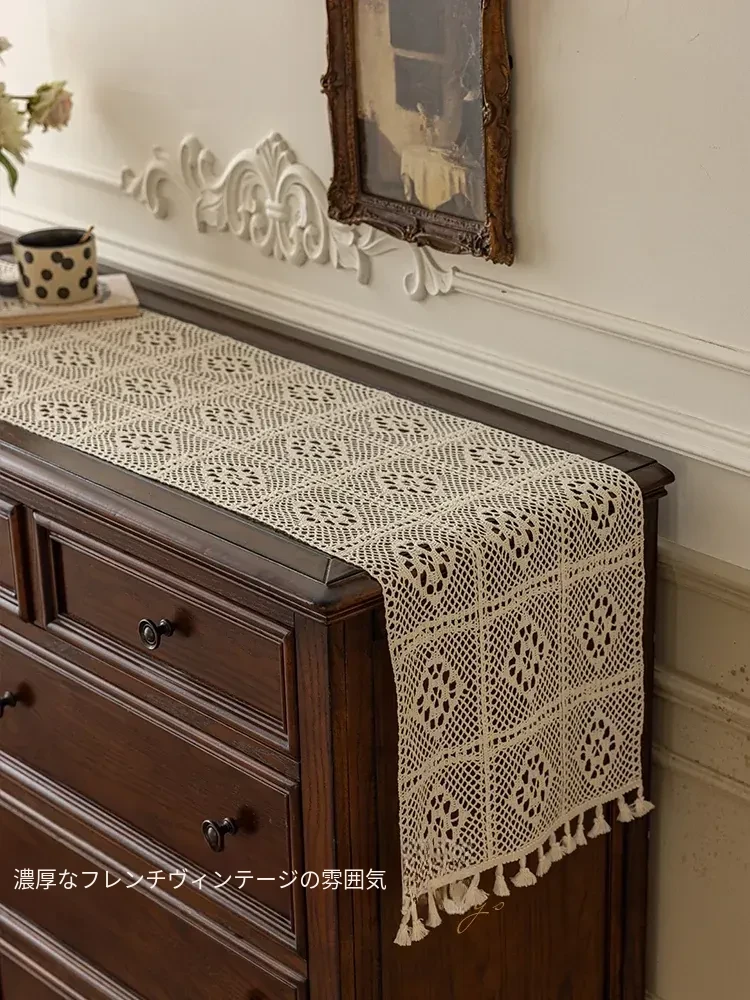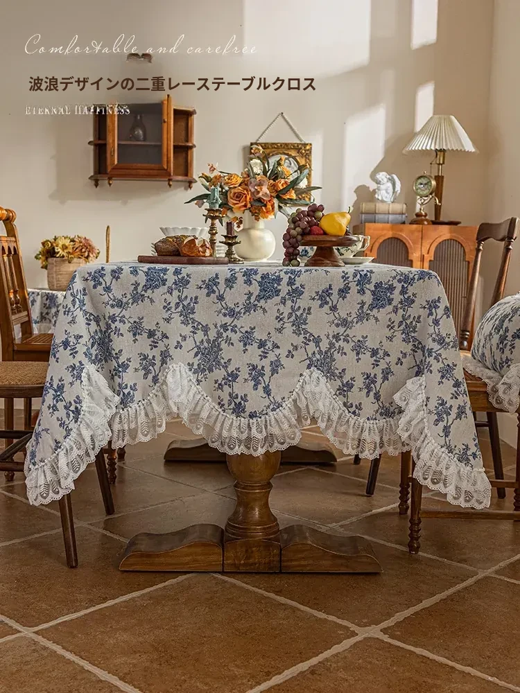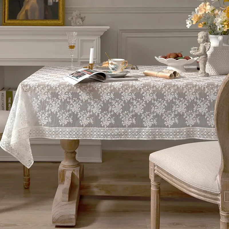 欧風田園スタイルのレース長方形テーブルクロス - 屋外ピクニックやリビングテーブルに最適!ホコリを防ぎ、スタイリッシュに保つカバー布。おしゃれな食卓を演出しましょう!