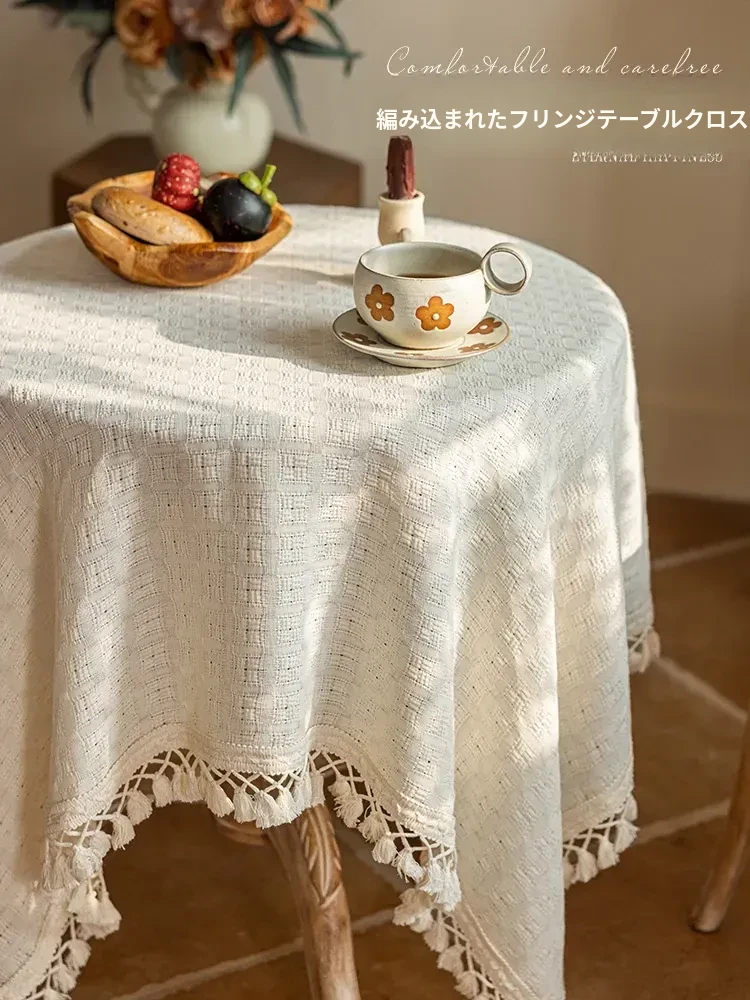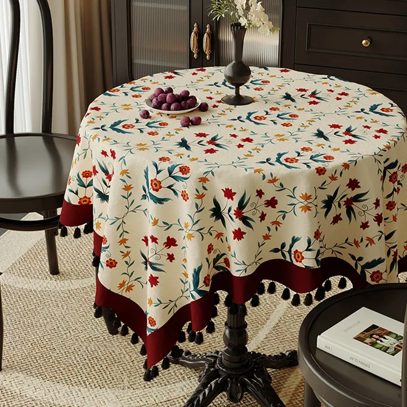 2026年新作!おしゃれなリビング用小型ラウンドテーブルカバー|アメリカンカントリー風のティーテーブル&ダイニングテーブル布|軽やかで上品な高級感を演出!