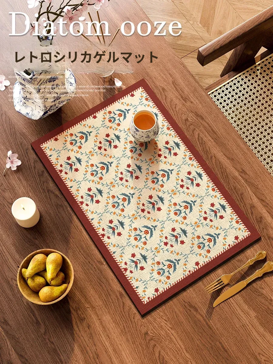 アメリカンフラワー柄のテーブルマット|高級感溢れる軽やかなデザイン|吸水・吸油性能抜群|コースターとしても使えるおしゃれなランチョンマット|熱をしっかりガード!