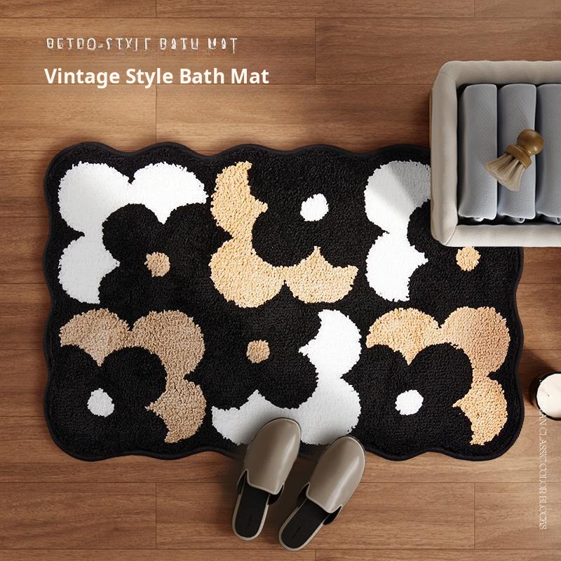 Vintage Style Bathroom Mat - Plush, Non-Slip, and Stain-Resistant for Quick Absorption and Fast Drying - Perfect for Shower Rooms and Toilets