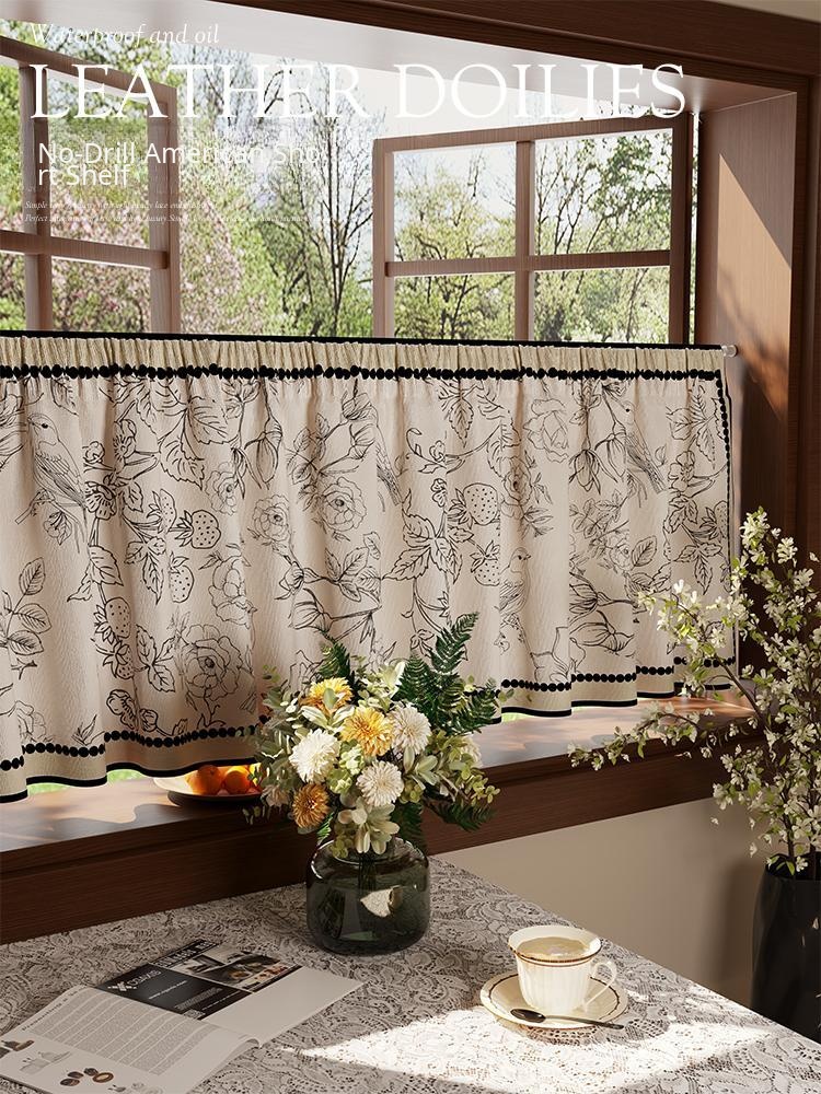 American Country Style Short Curtains - Light-Blocking, No-Drill Room Dividers for Home Use. Elegant French-Inspired Design for Doorways and Decorative Half Curtains. Perfect for Adding Charm and Privacy to Any Space!