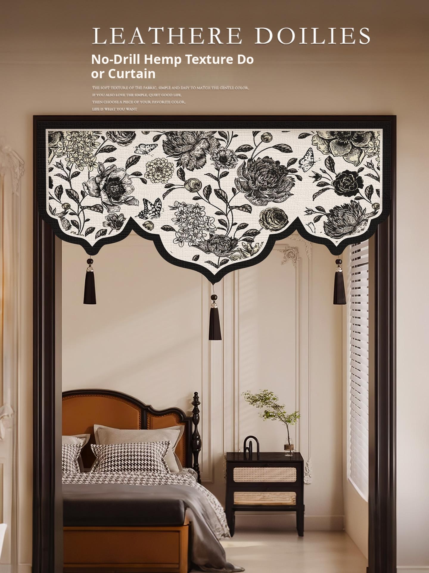 Vintage-Style Irregular Door Curtain - Retro Half Curtain for Living Room, No Drilling Required, Privacy Shield, Ventilation Divider for Bedroom and Bathroom