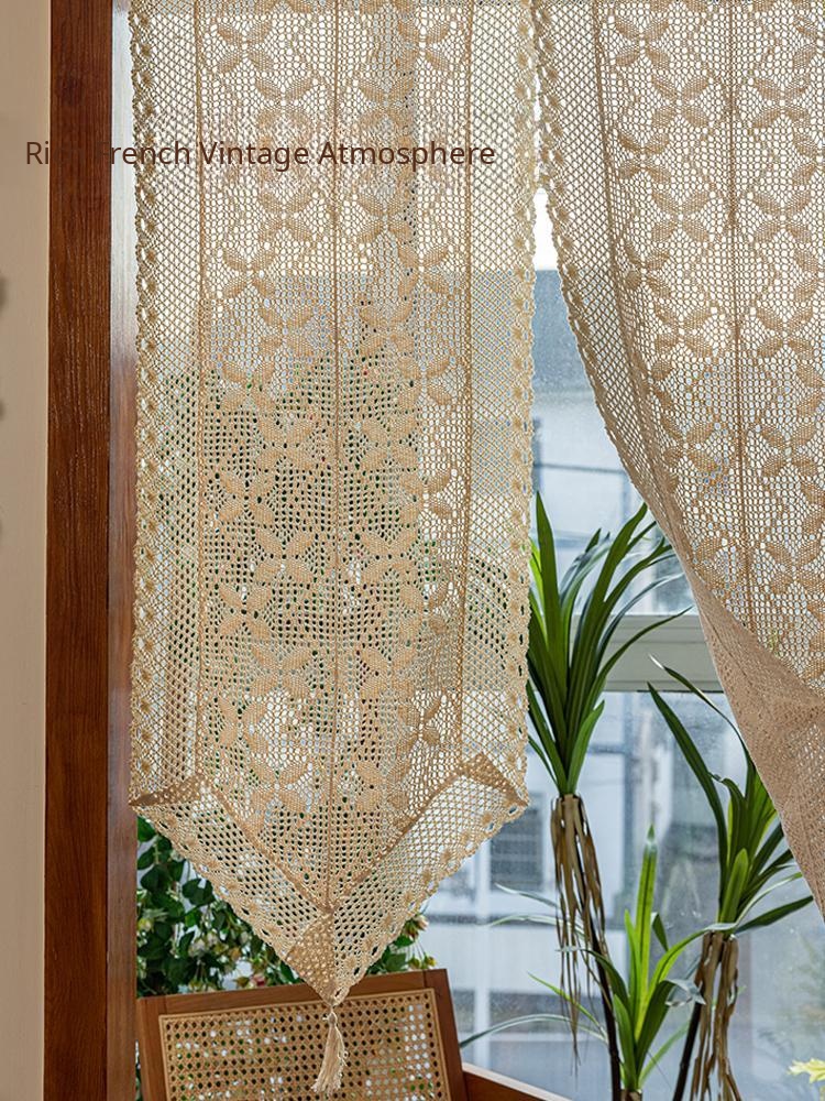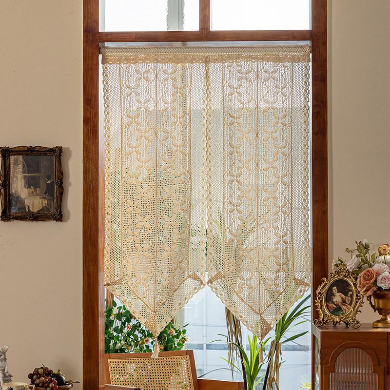 2026 New American Country Style Half Curtain - Elegant Lace Sheer Drapes for Living Room Partition, Luxurious Home Window Treatment