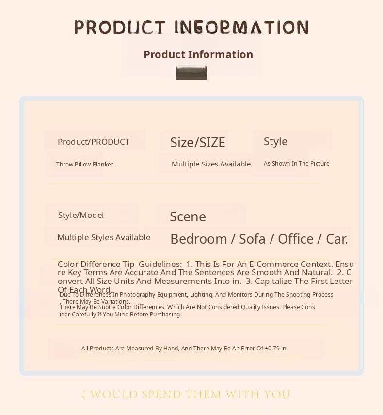 Pillow 15.75in*15.75in Unfolded 39.37in*59.06in
