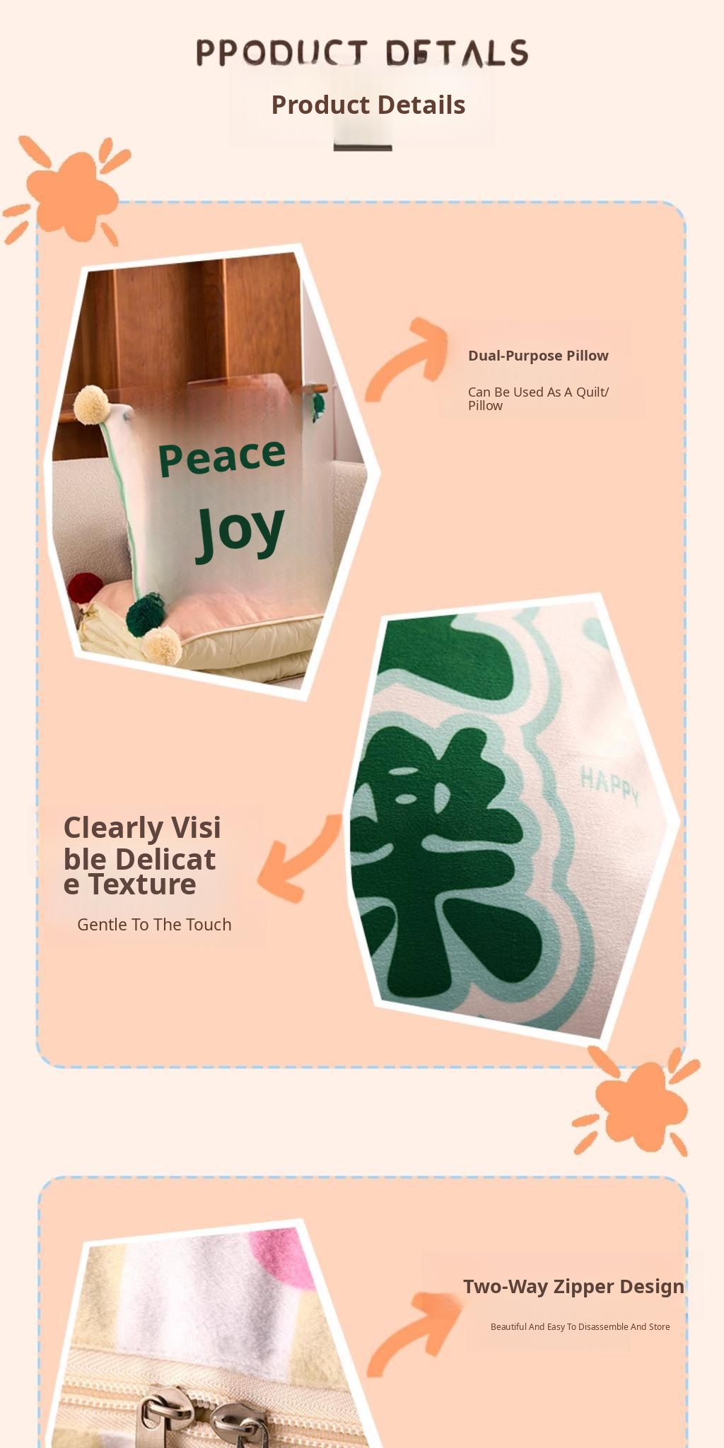 Orange "Little Joys of Life" Throw Pillow Blanket