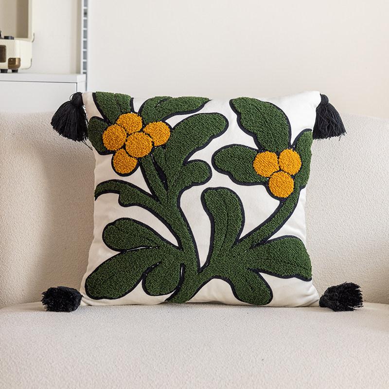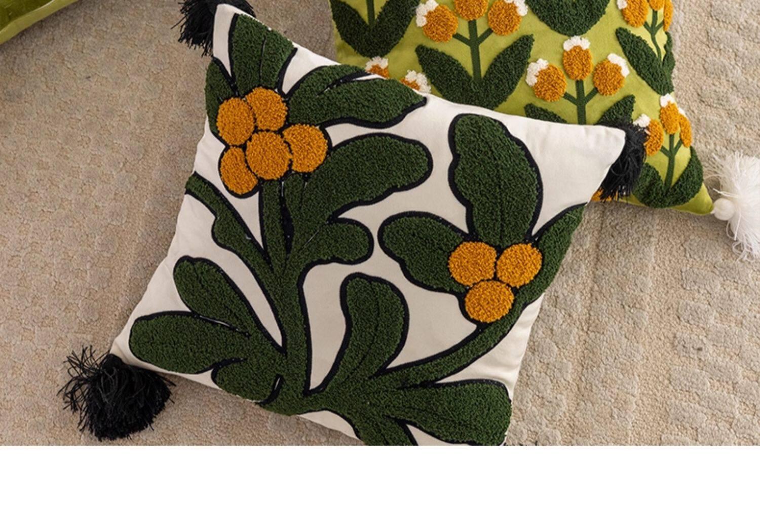 Green Leaf Fruit Towel Embroidered Pillow