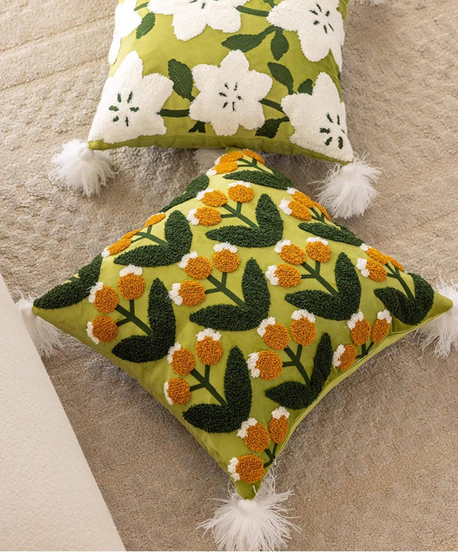 Garden Romance Towel Embroidered Throw Pillow