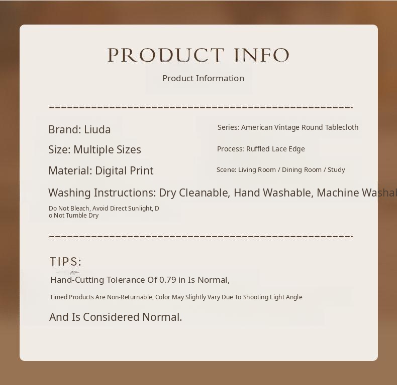 American Country Style Tablecloth - Luxurious and Easy Care, Oil and Waterproof Round Table Cover for Dining, Coffee, and Market Stalls