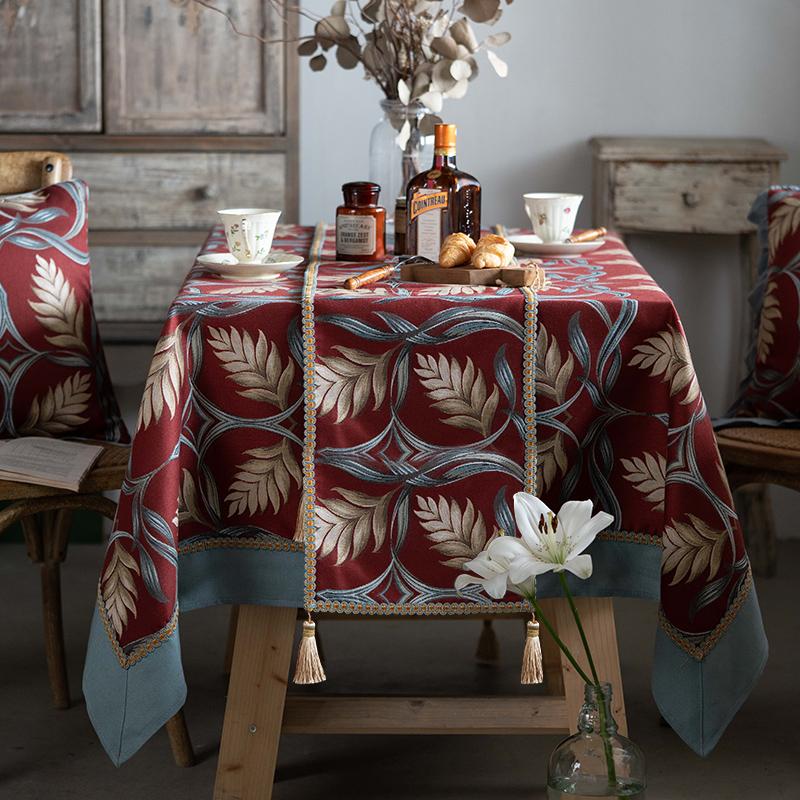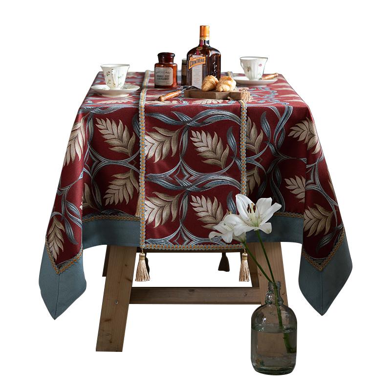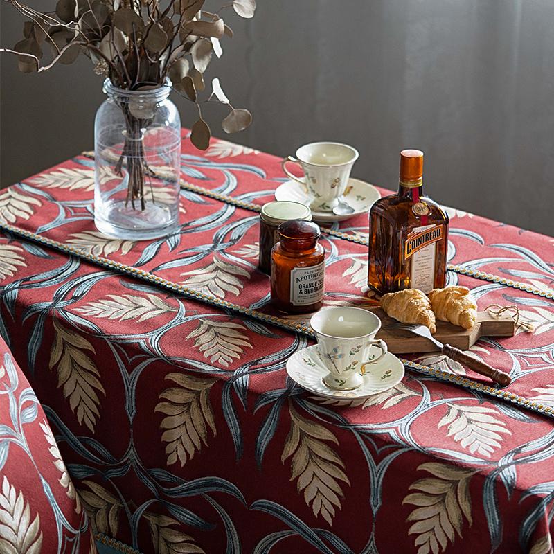 American Country Vintage Tablecloth - Nordic High-End Luxury Rectangular Linen Feel Dining Table and Coffee Table Mat Set with Table Runner