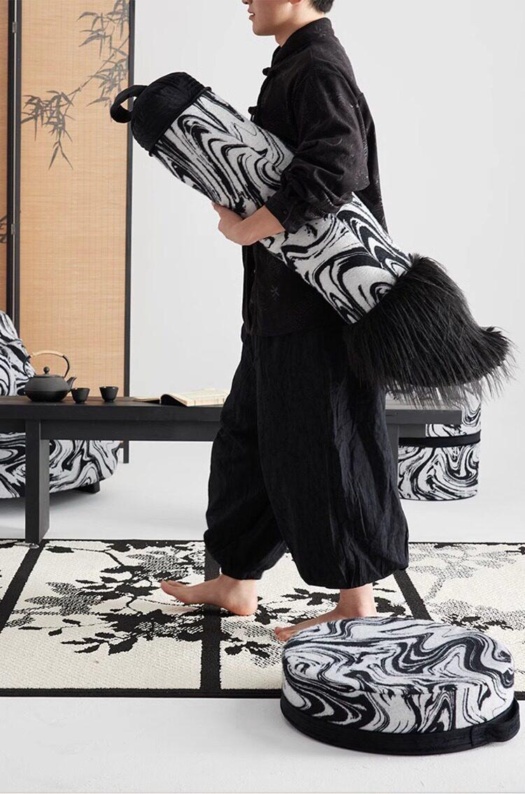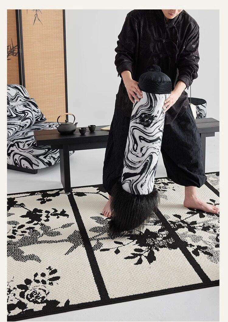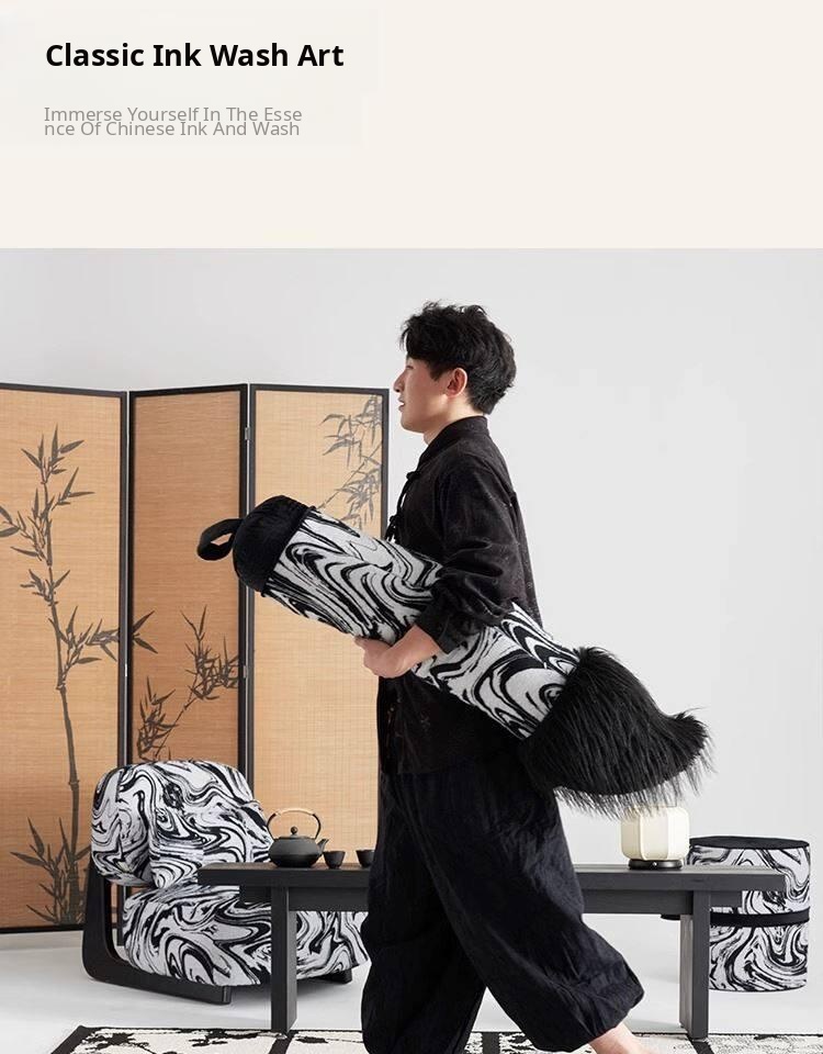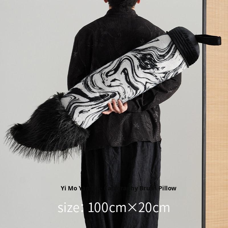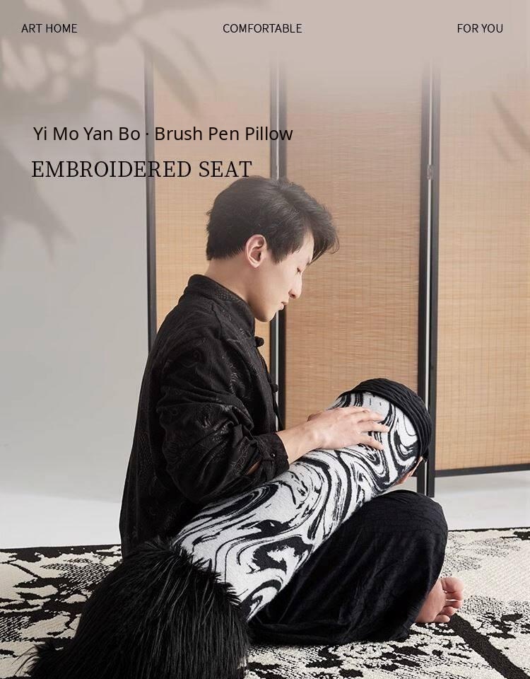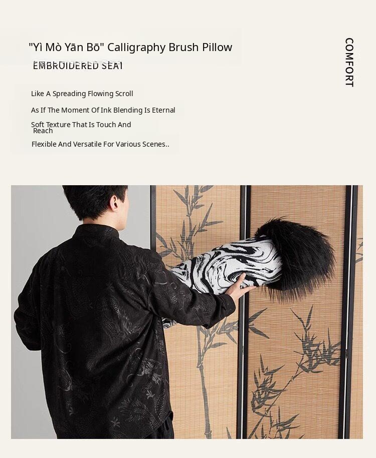 Creative Black and White Chinese-Style Calligraphy Pillow - Perfect for Living Room, Bedroom, or Sofa. Enhance Your Space with This Stylish Long Cushion for Back Support and Comfort.