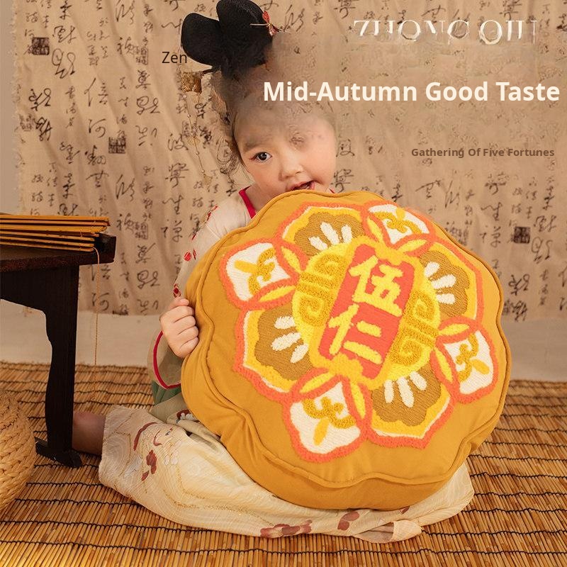 Creative Mid-Autumn Festival Embroidered Pillow - Five Nut Mooncake Cushion for Living Room Sofa, Perfect Gift or Back Support Pillow