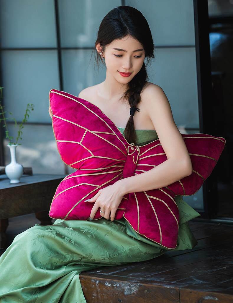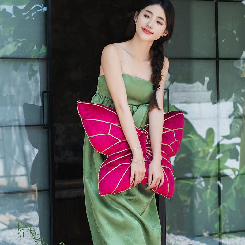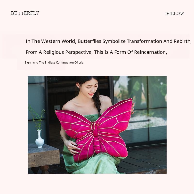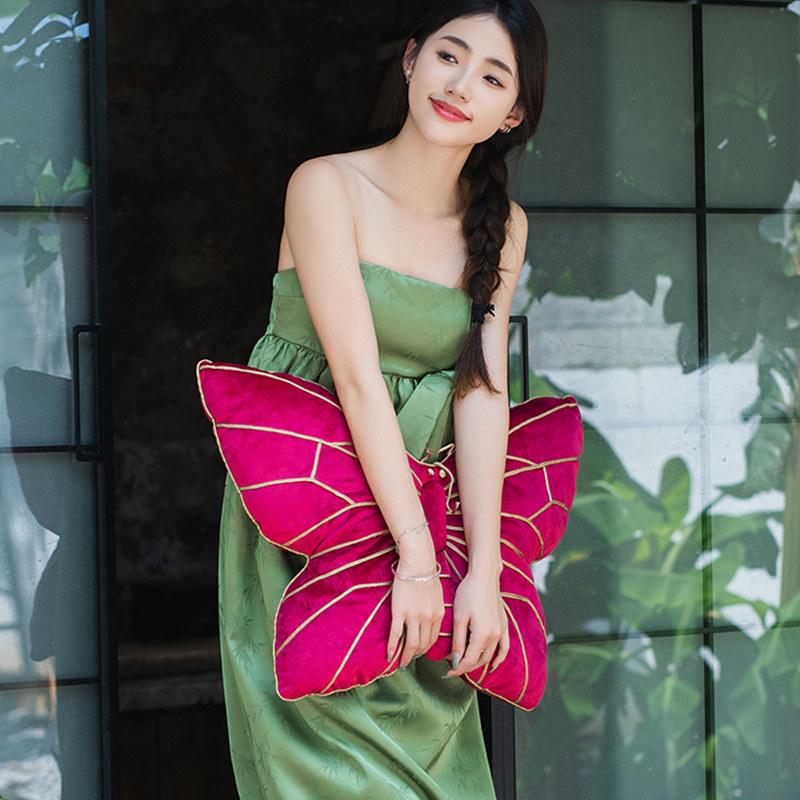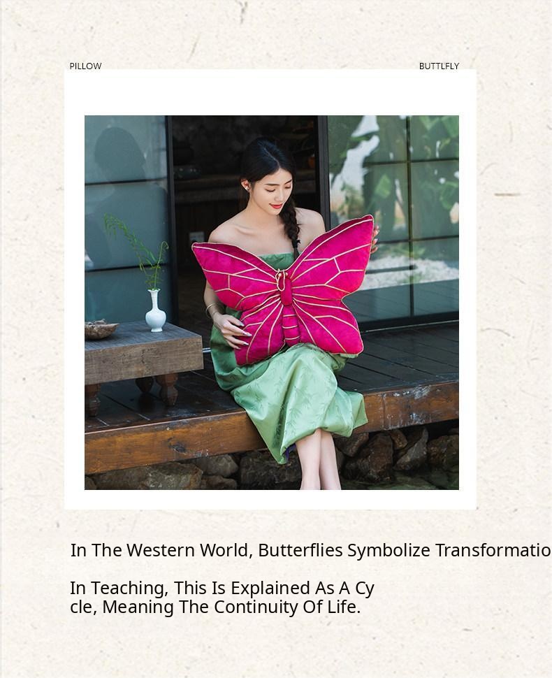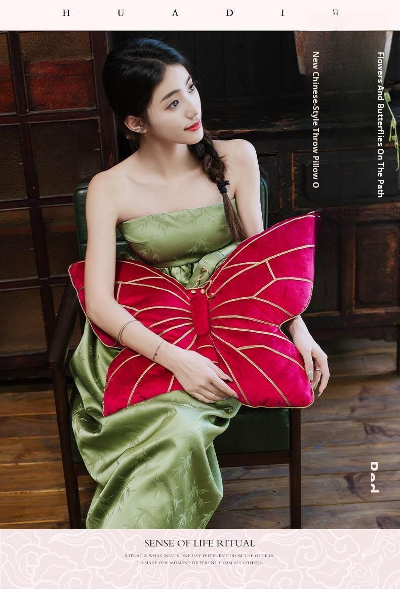 Creative Red Throw Pillow for Living Room Sofa - Festive Decorative Cushion for Wedding Room, New Chinese Style Butterfly Shaped Backrest Pillow