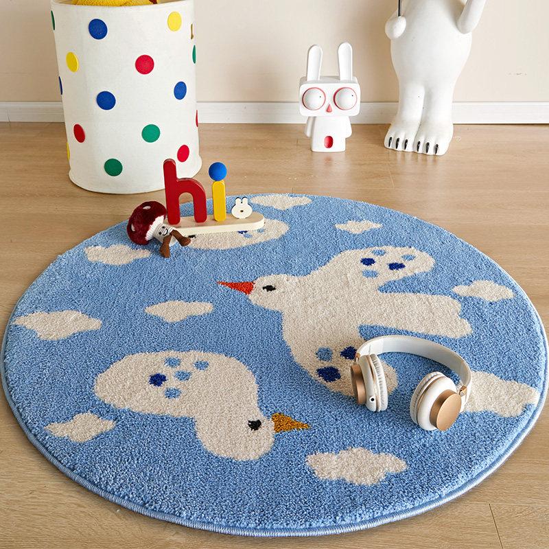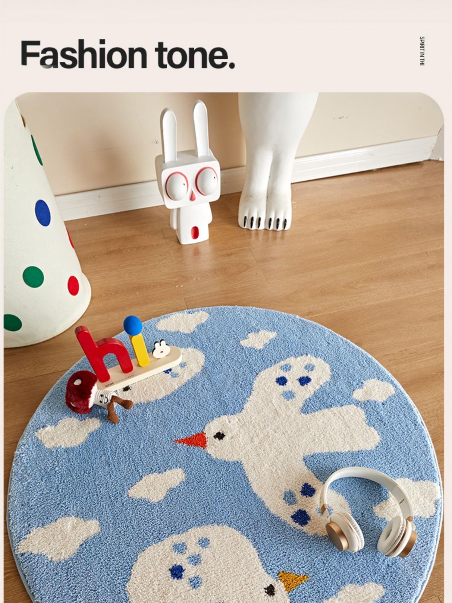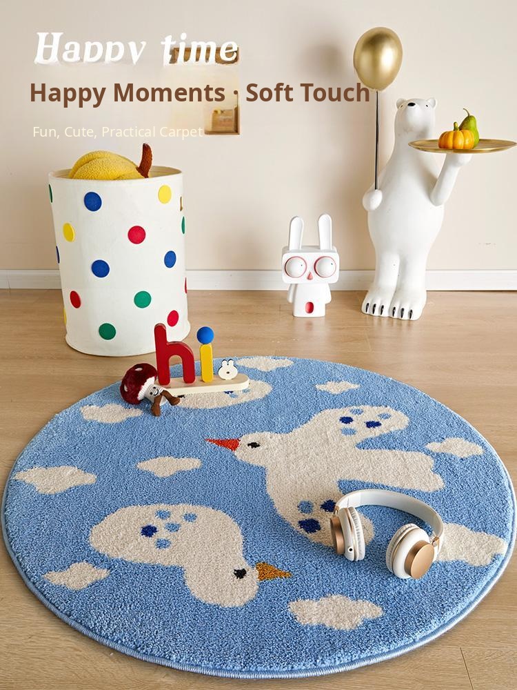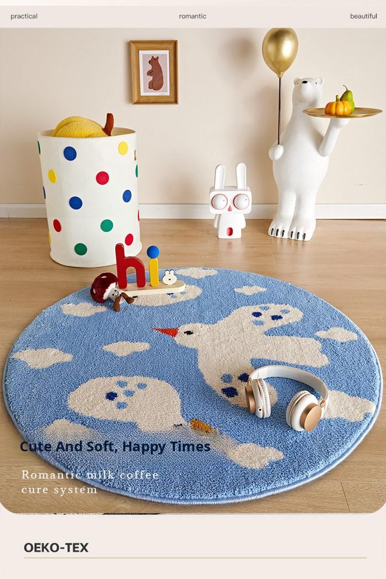 Cute Cartoon Round Rug - Thickened Milk Silk Carpet for Kids' Room, Bedroom Reading Area, Adorable Home Floor Mat, Perfect for Bedside Use!