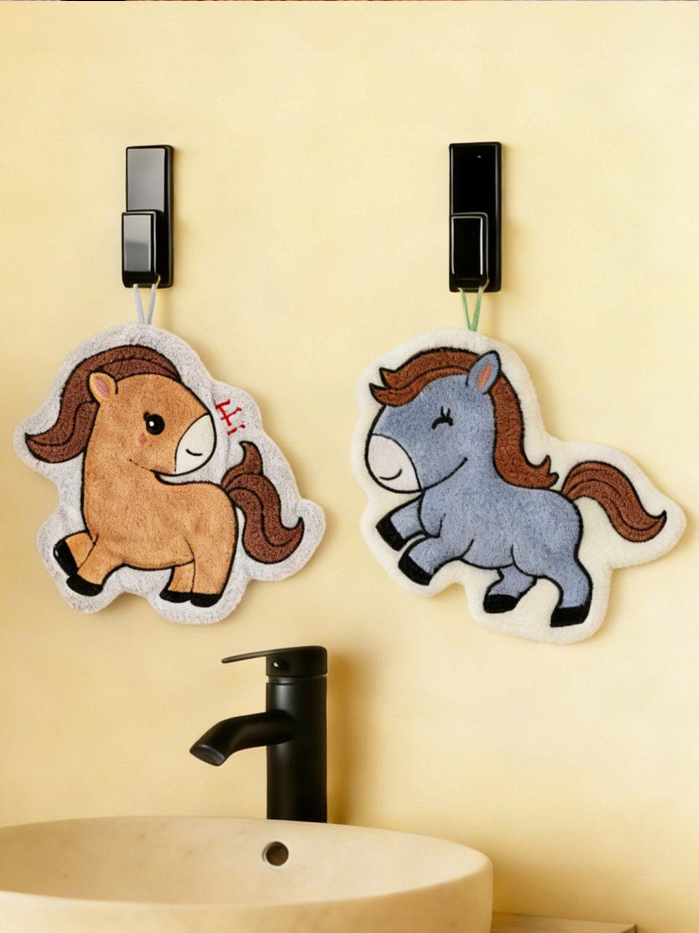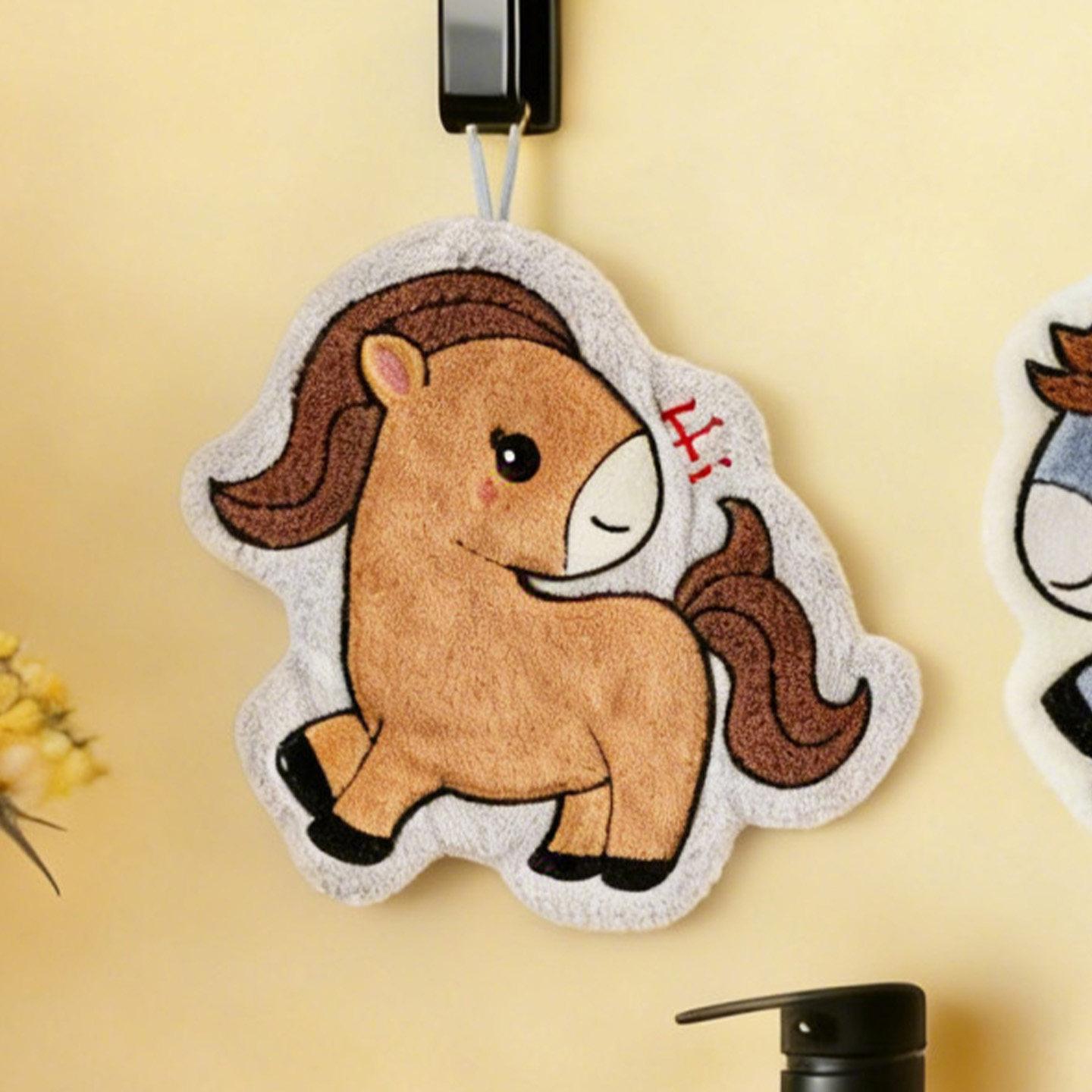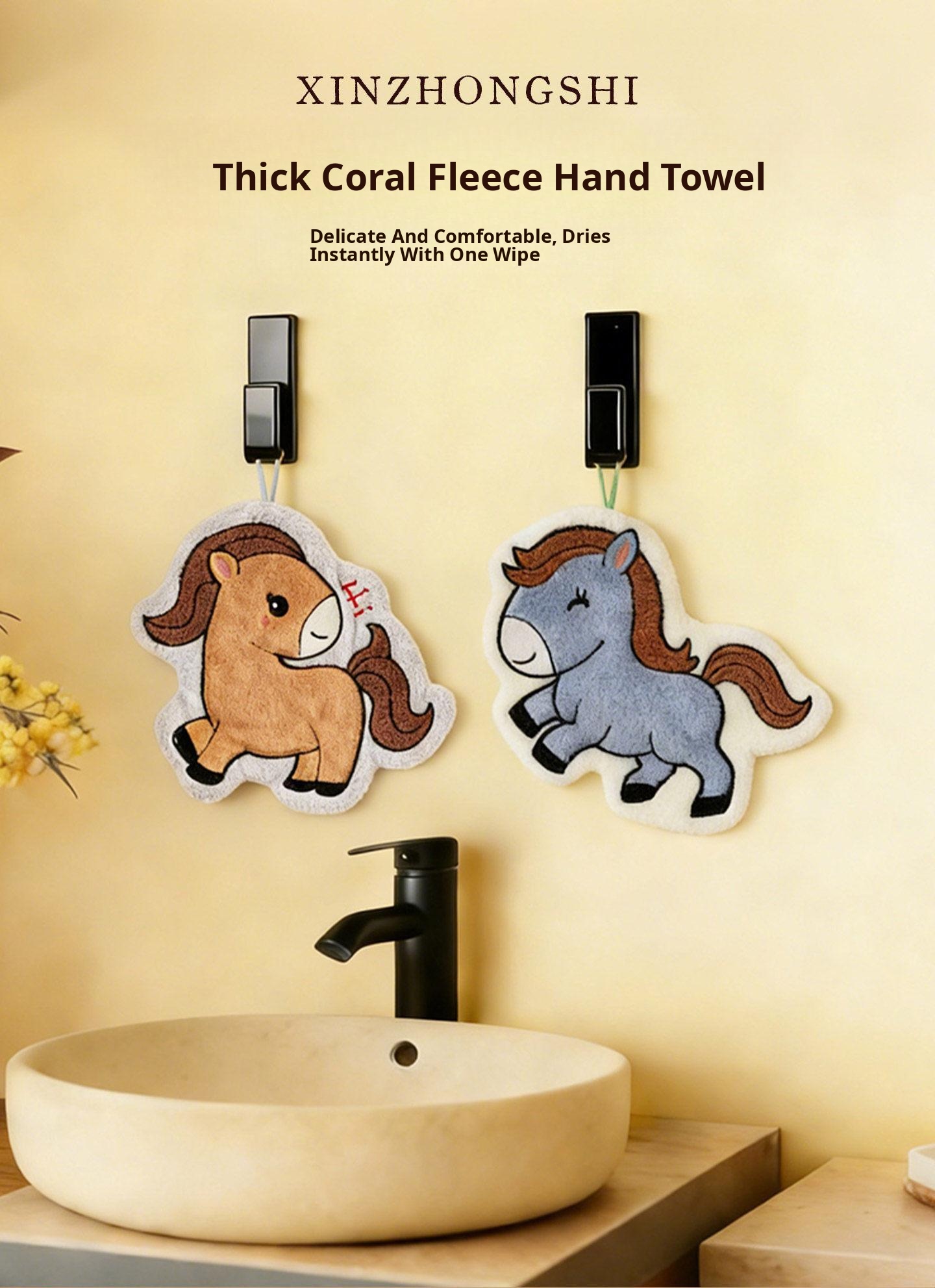 Cute Coral Fleece Wall-Mounted Hand Towels for the Year of the Horse 2026 - Super Absorbent, Thickened Bathroom Handkerchief for a Fresh Start to the New Year!