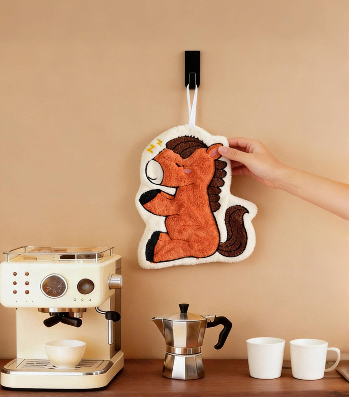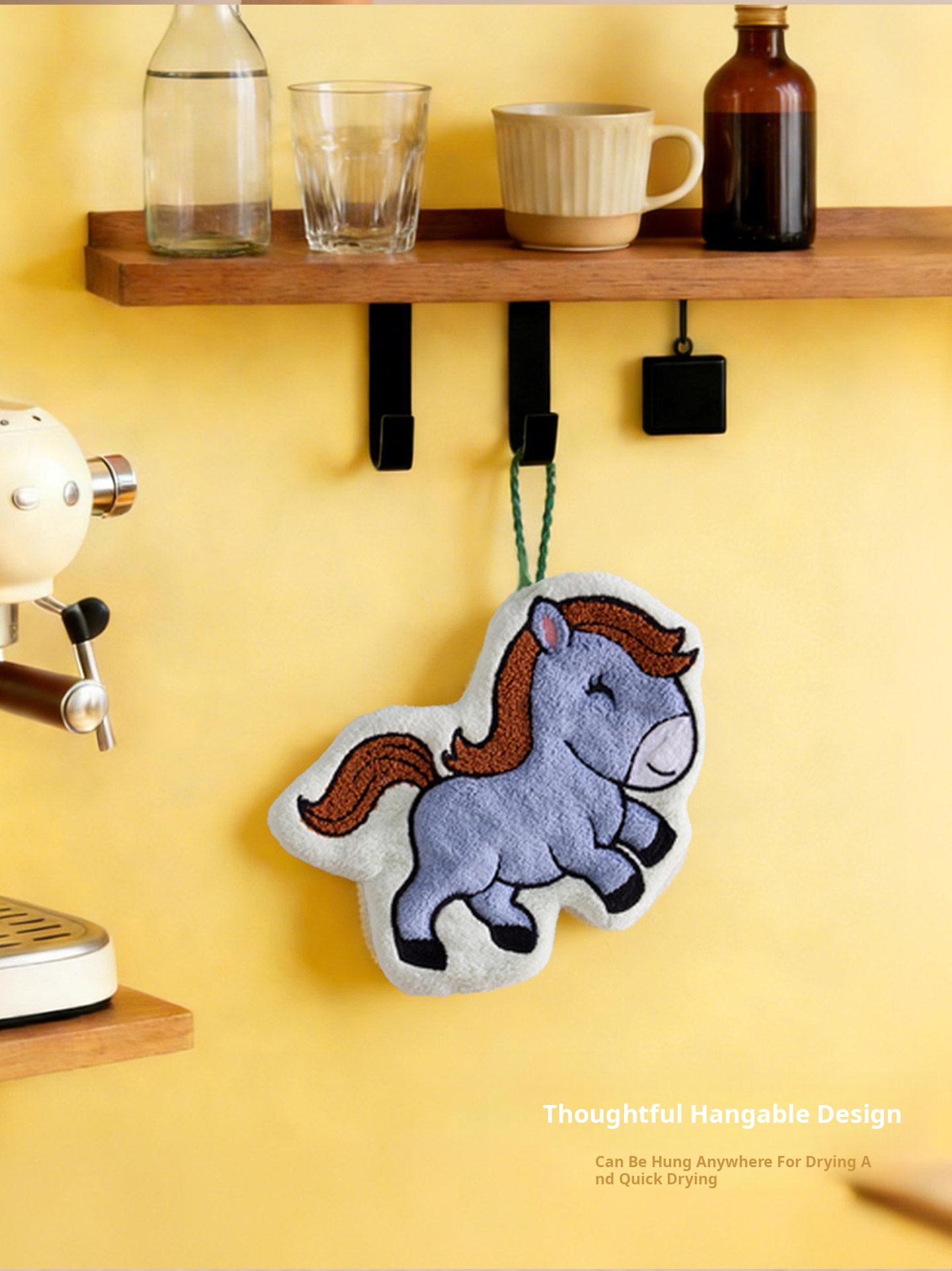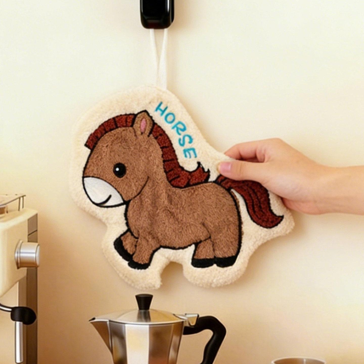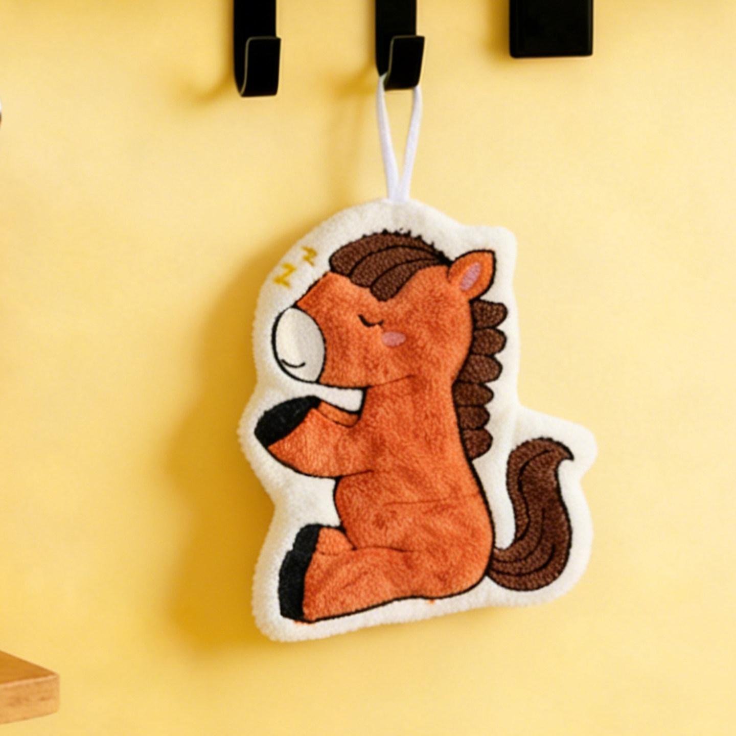 Cute Coral Fleece Wall-Mounted Hand Towels for the Year of the Horse 2026 - Super Absorbent, Thickened Bathroom Handkerchief for a Fresh Start to the New Year!
