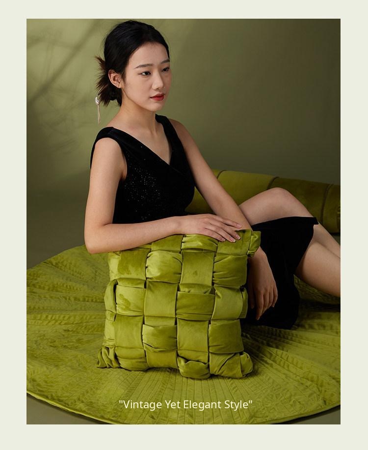 Elegant Chinese-Style Sofa Throw Pillows - Luxe Solid Color Striped Cushions for Living Room, Green Back Support Pillow with a Touch of Traditional Charm