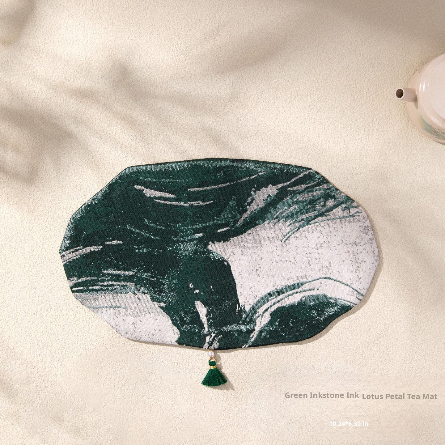 Green Inkstone Lotus Petal Tea Mat [10.24in*6.30in]