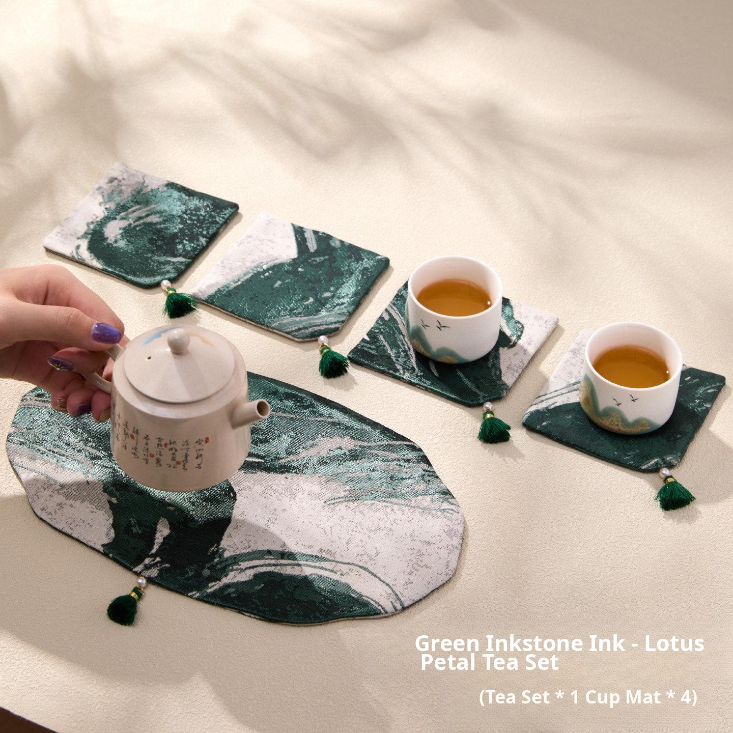 Green Inkstone Lotus Petal Tea Mat Set 2 [26*16Cm+9*9Cm 4 Pieces]