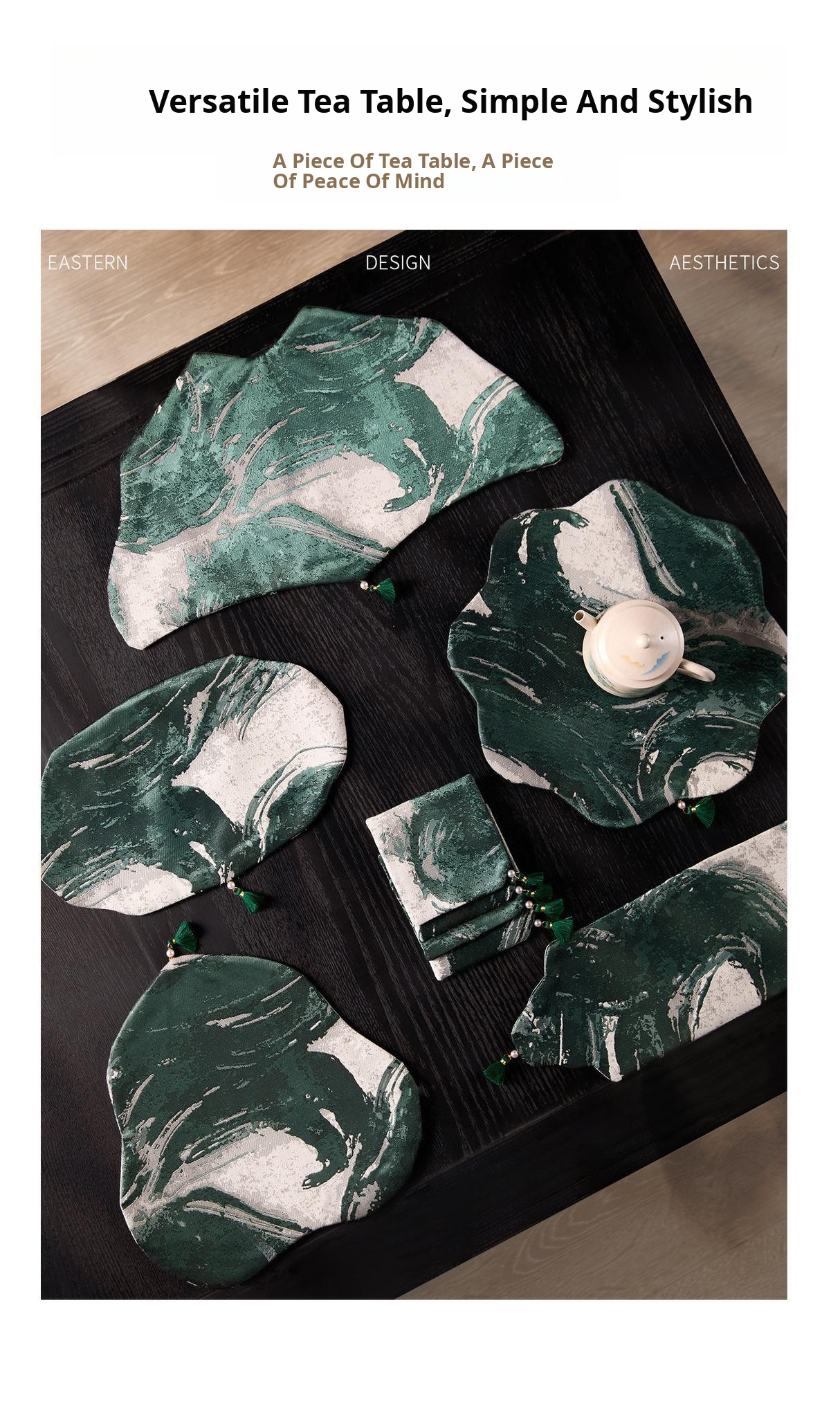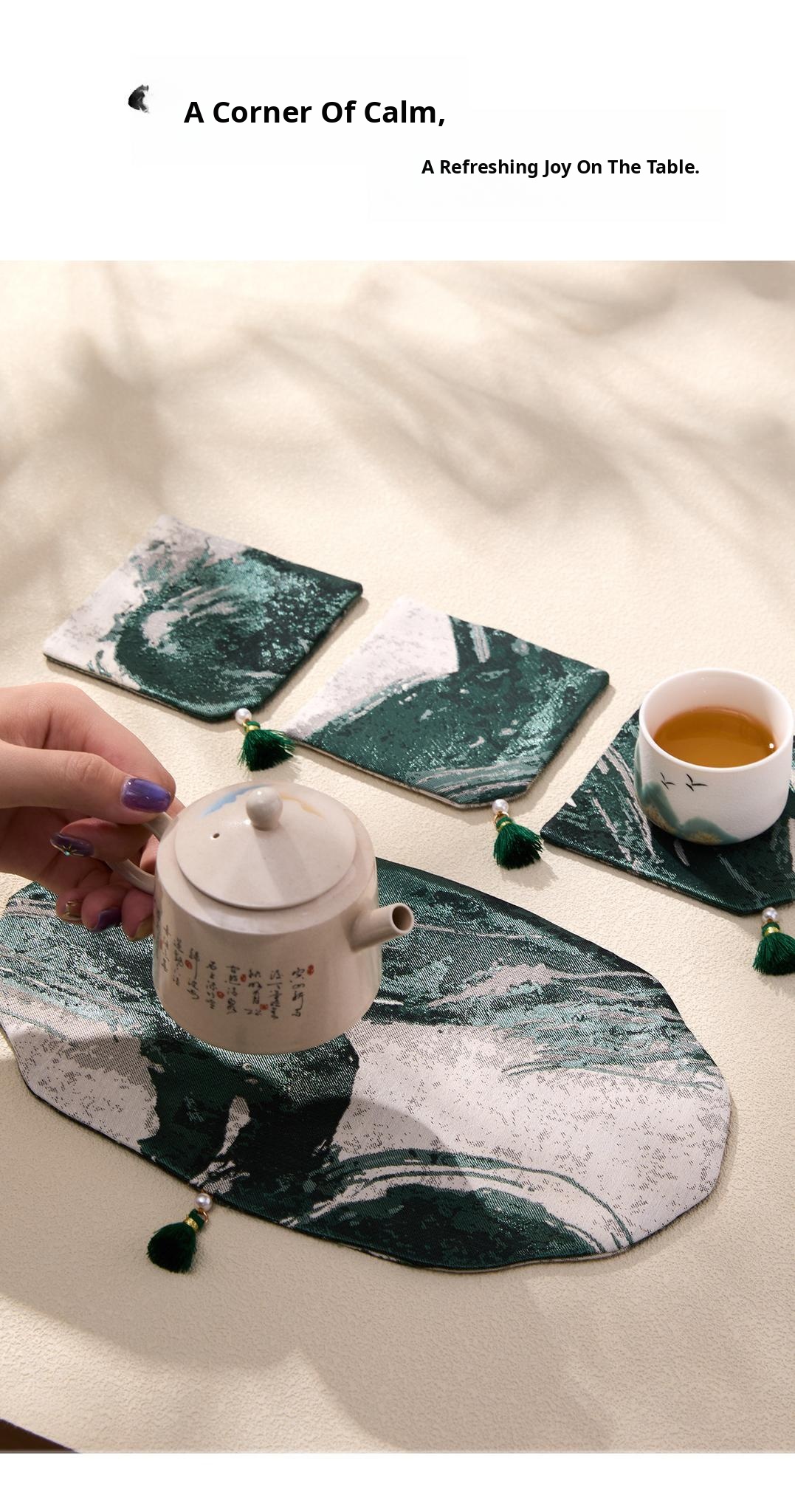 Elegant New Chinese Style Tea Set - Premium Dry Brewing Mat with Ancient Charm, Waterproof Table Mat, Perfect for Tea Tables, Includes Tea Tray and Coasters