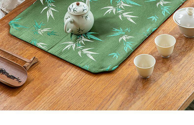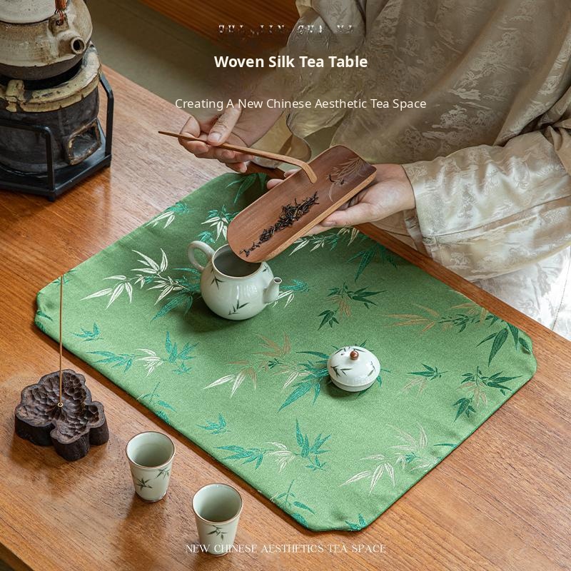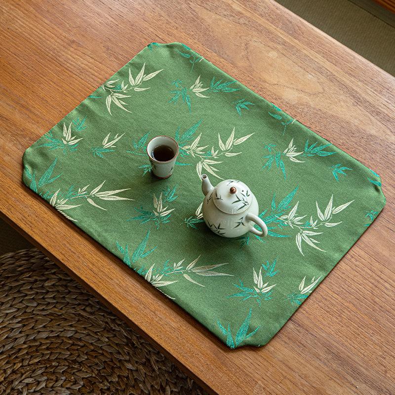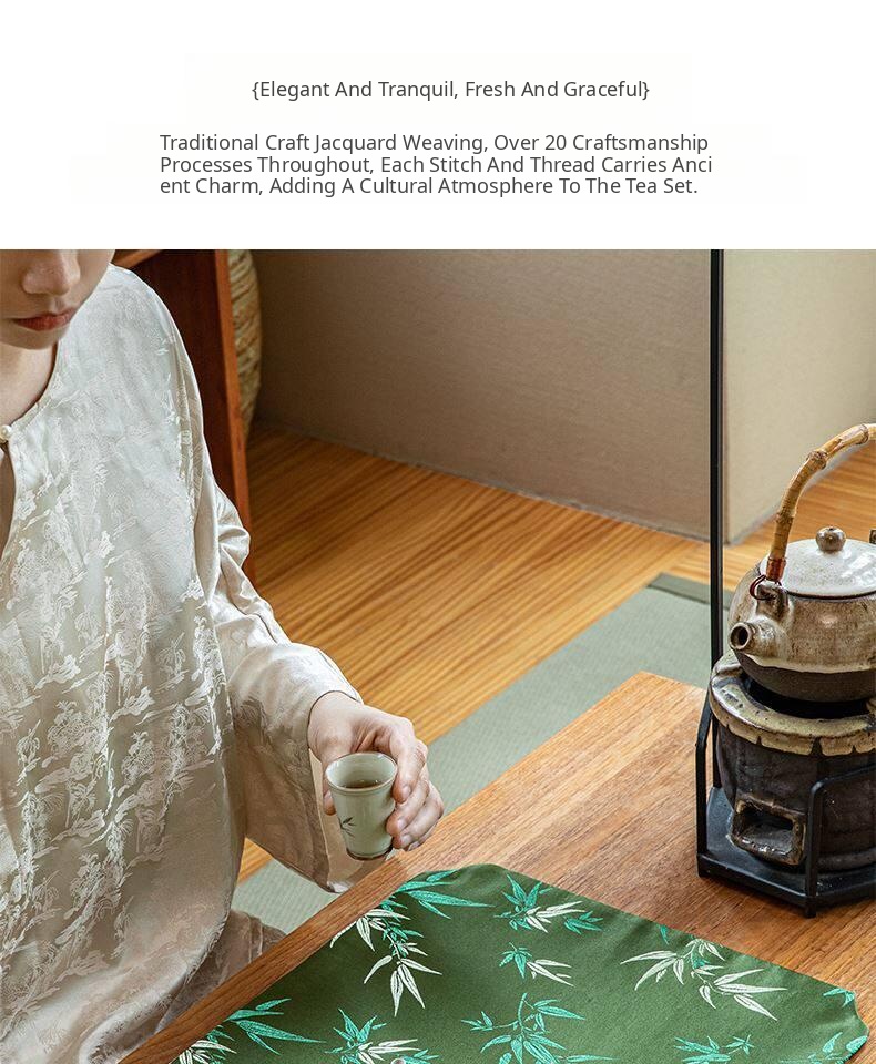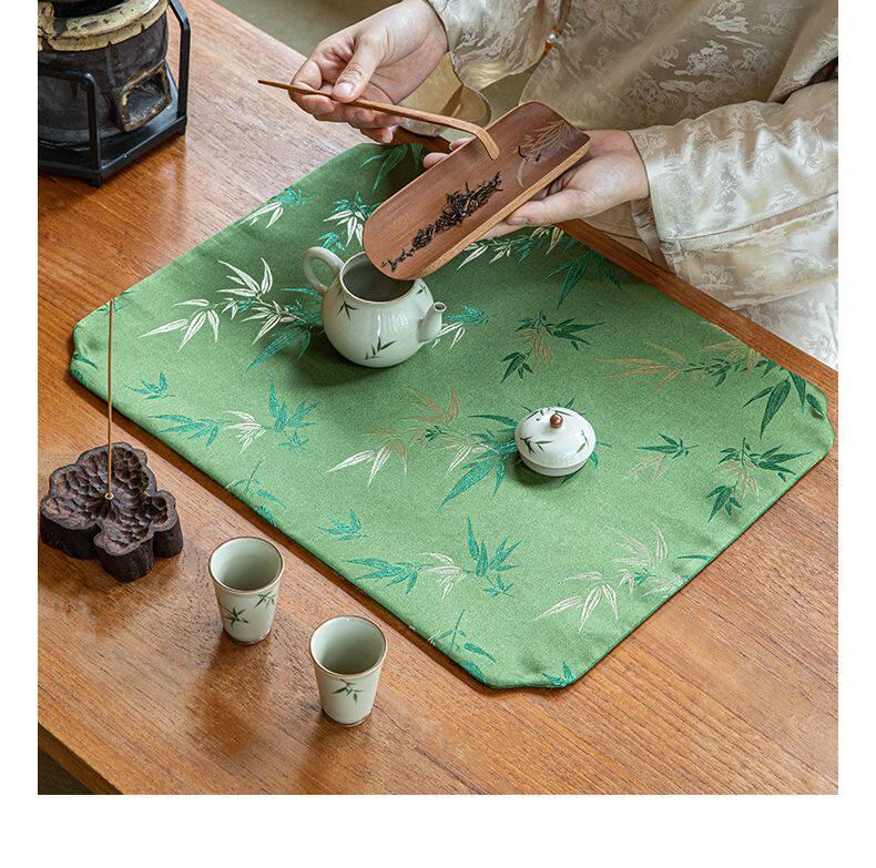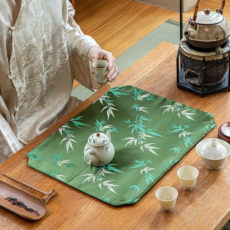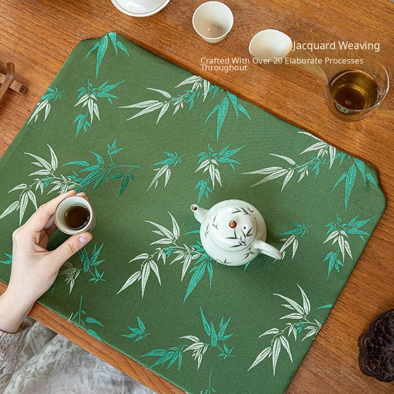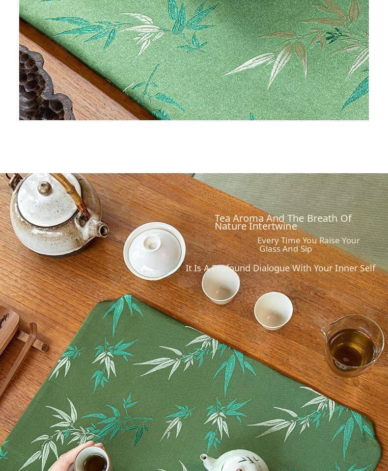 Elegant Zen-style Waterproof Bamboo Tea Mat - Premium Green Table Protector for Tea Ceremonies, Classic Design with High-end Quality, Perfect for Tea Cups and Accessories.