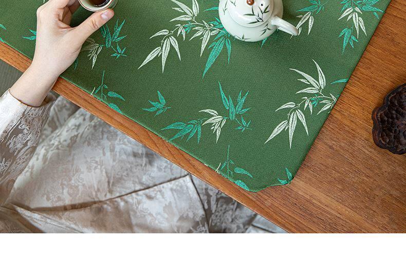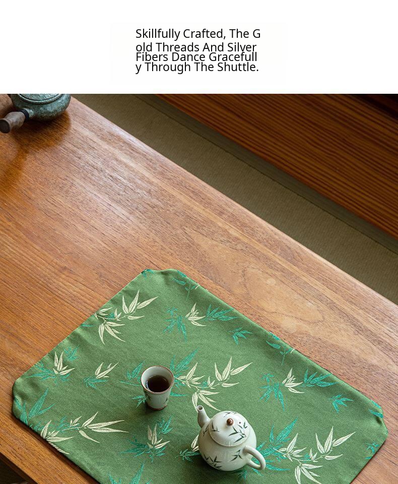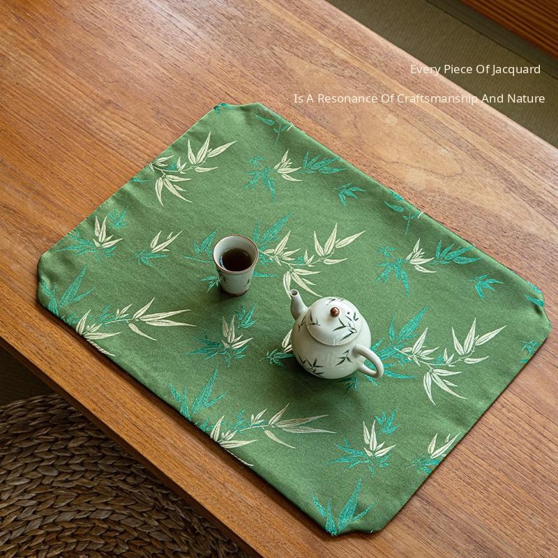 Golden Bamboo Leaf Window Flower Short Brocade Tea Mat