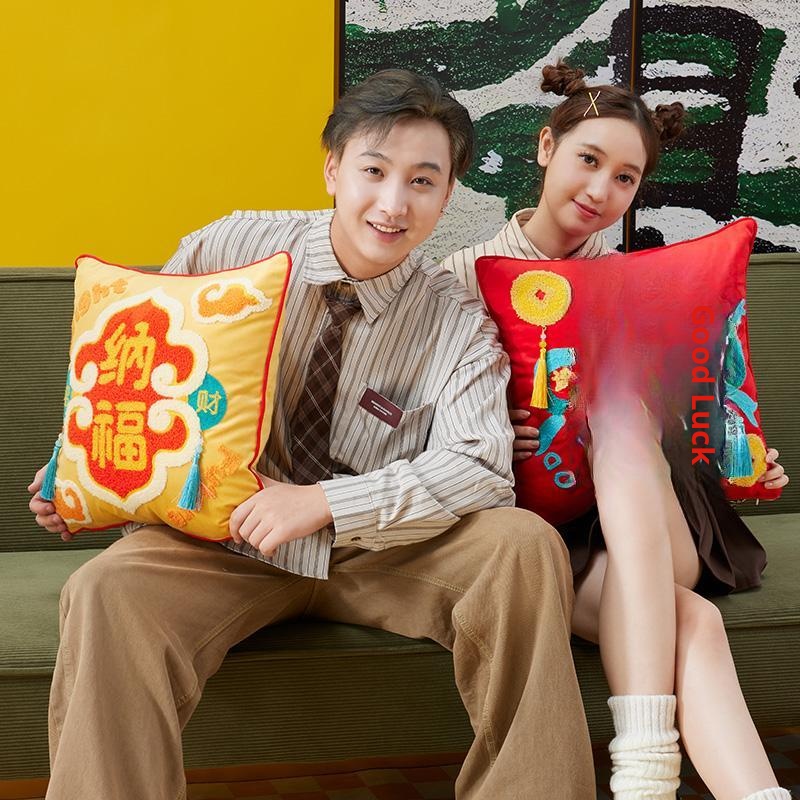 Festive Red Throw Pillow - Perfect Gift for New Year, Housewarming, Grand Openings, and Weddings - Cozy Sofa Cushion Cover for a Joyful Celebration!