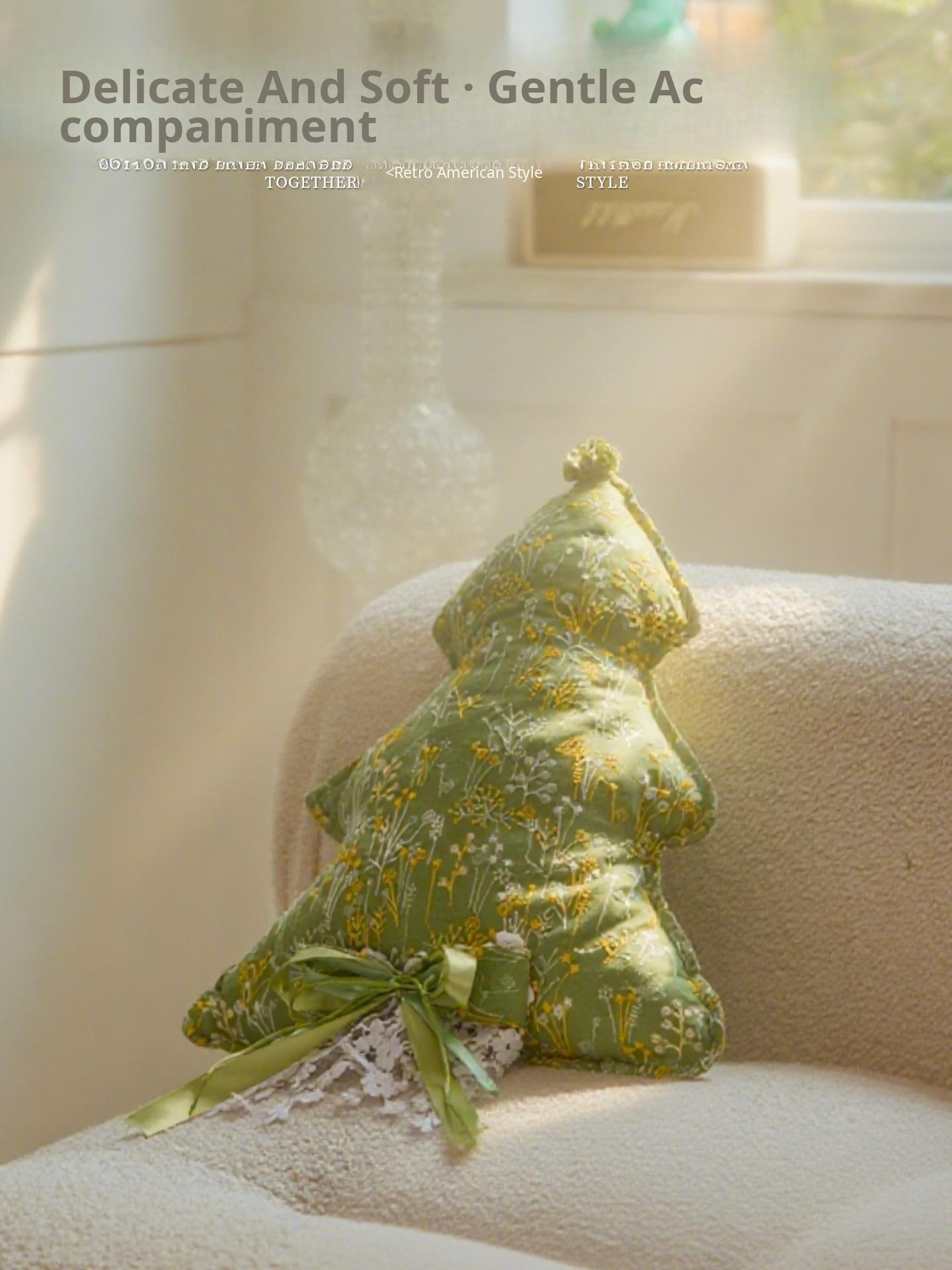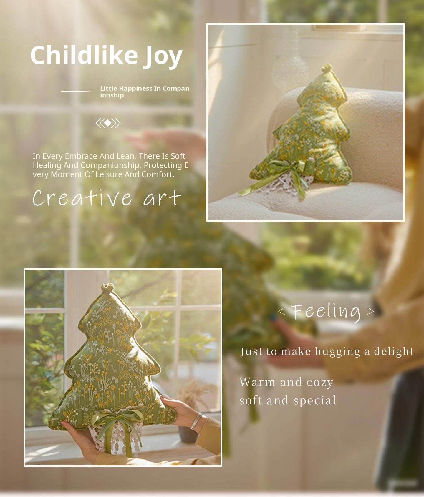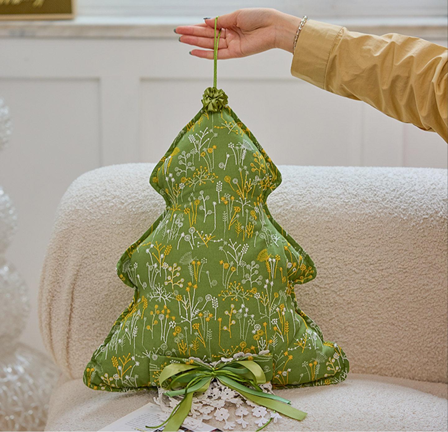 Forest Green Embroidered Christmas Tree Throw Pillow - Unique Shaped Cushion for Living Room, Sofa, Bedroom, and Bay Window - Decorative Fabric Waist Pillow Cover for Cozy Home Decor