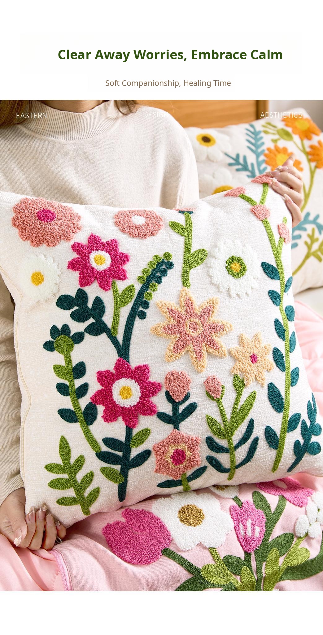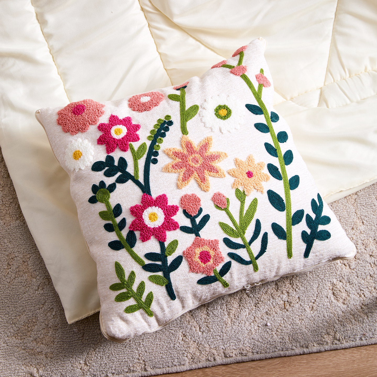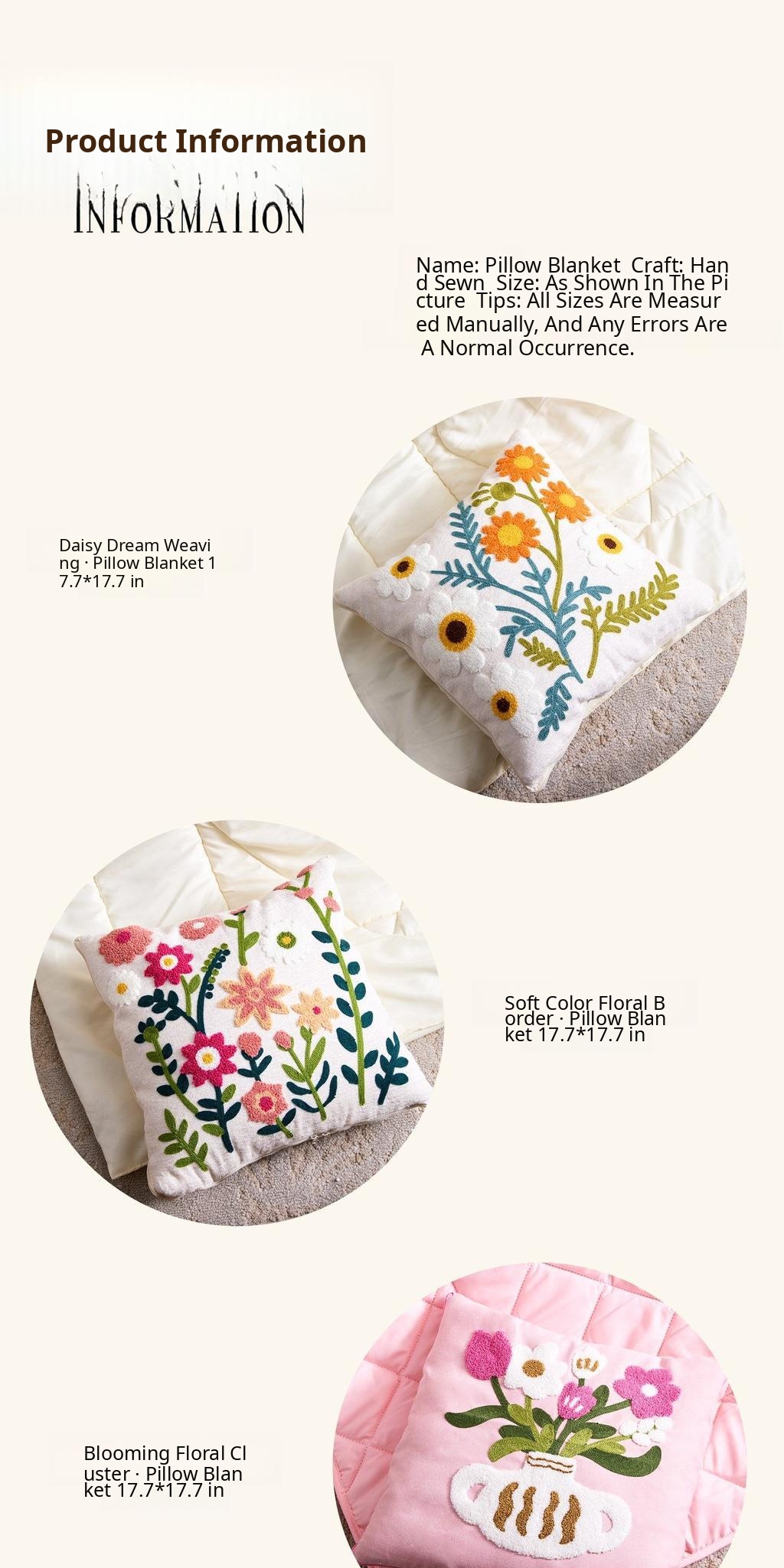 Soft Color Flower Border Pillow Quilt 17.72in*17.72in