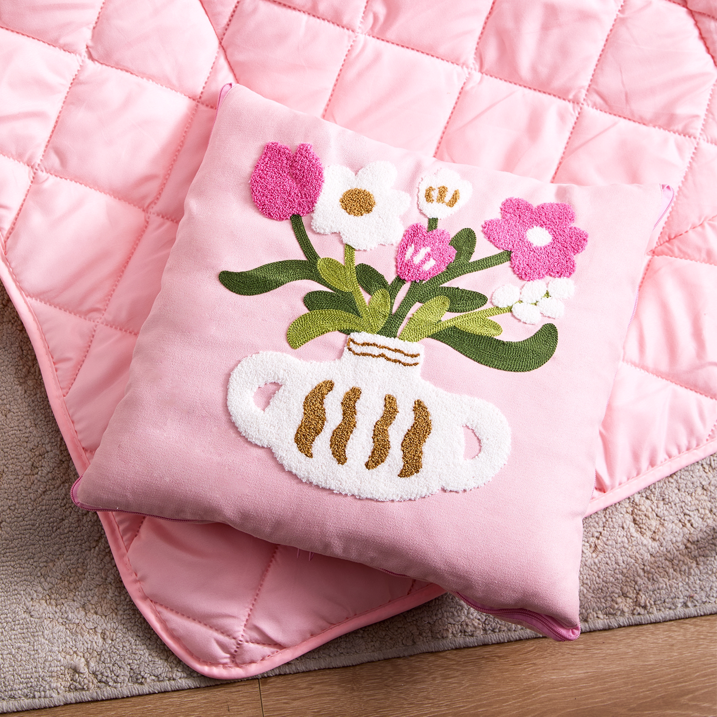 Pink Flower Cluster Pillow Quilt 17.72in*17.72in