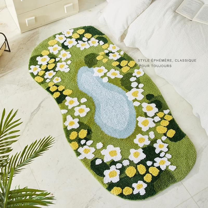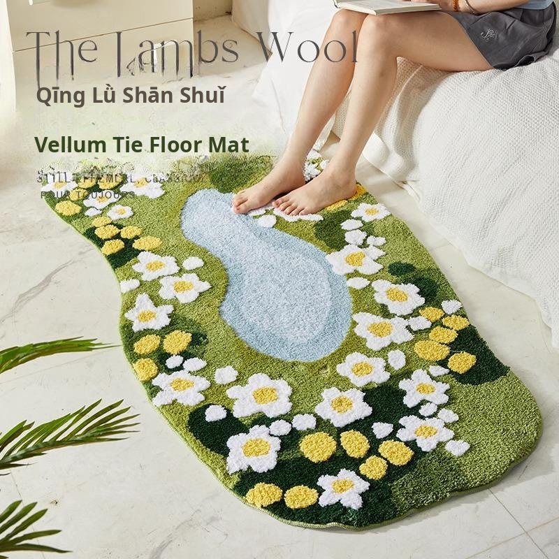 Luxurious Green Moss Area Rug - Velvet Bedroom Carpet, Irregular Shaped Mat for a Touch of Elegance in Your Living Space