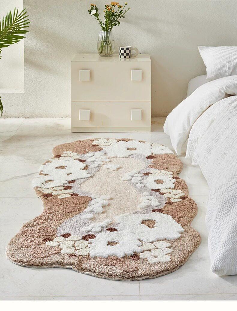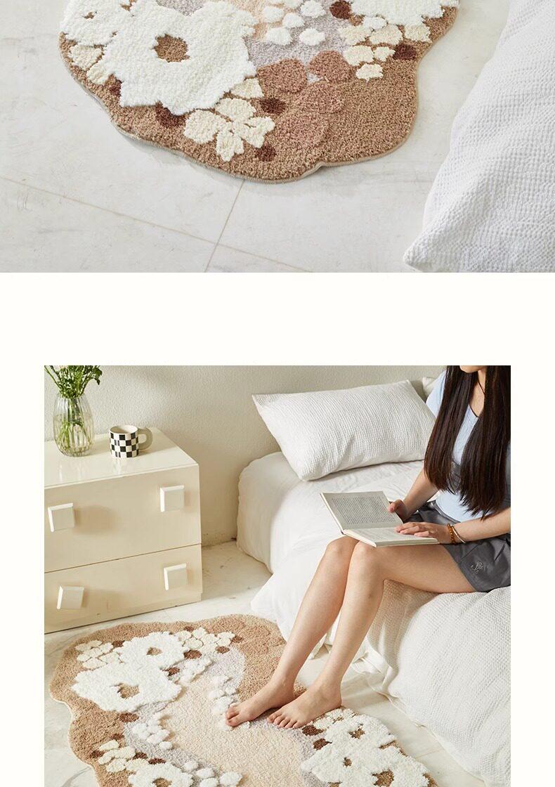 White Romantic Flocked Tpe Floor Mat - Irregular Shape