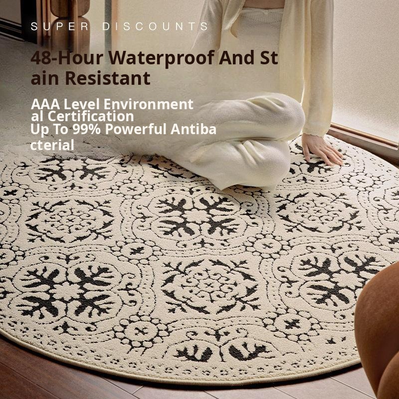 Luxury American Round Living Room Carpet - Waterproof, Stain-Resistant, Easy Care Tea Table Mat & Stylish Chair Cushion for Your Walk-in Closet. Perfect for Elevating Your Space!