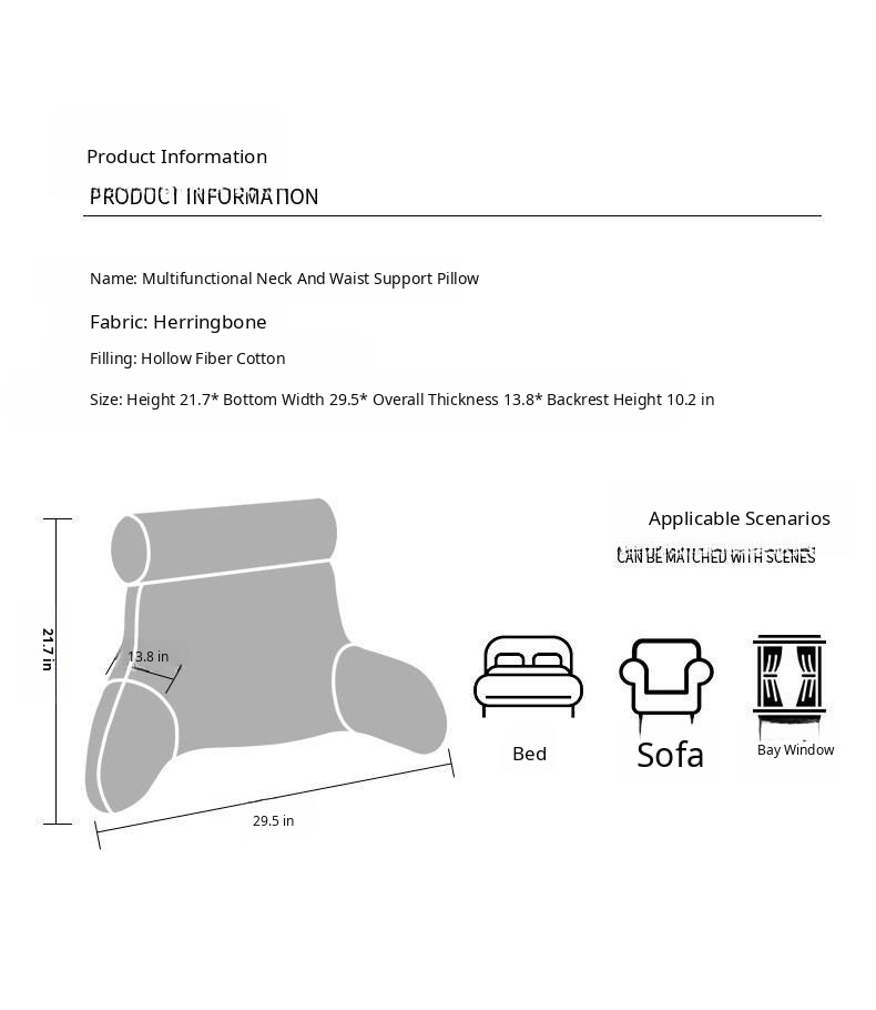 Luxury Bedside Backrest Pillow - Soft Support Cushion for Bedroom, Sofa, and Bay Window - Perfect for Long Sitting, Neck Protection, and Comfort.
