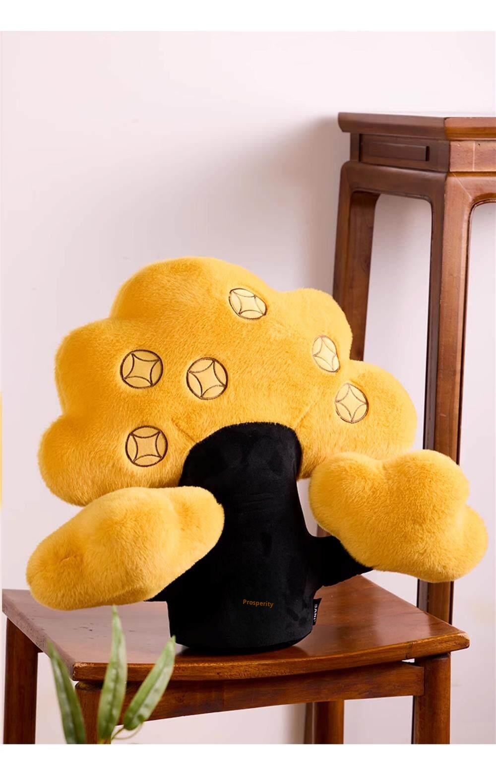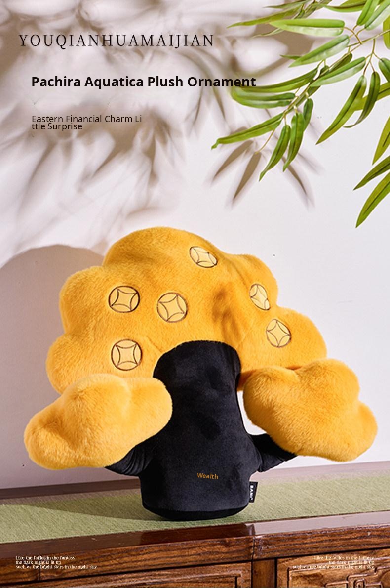 New Chinese Style Money Tree Pillow - Unique Shaped Pine Plush Toy with Embroidery, Perfect for Living Room Sofa Decoration and Creative Home Accent