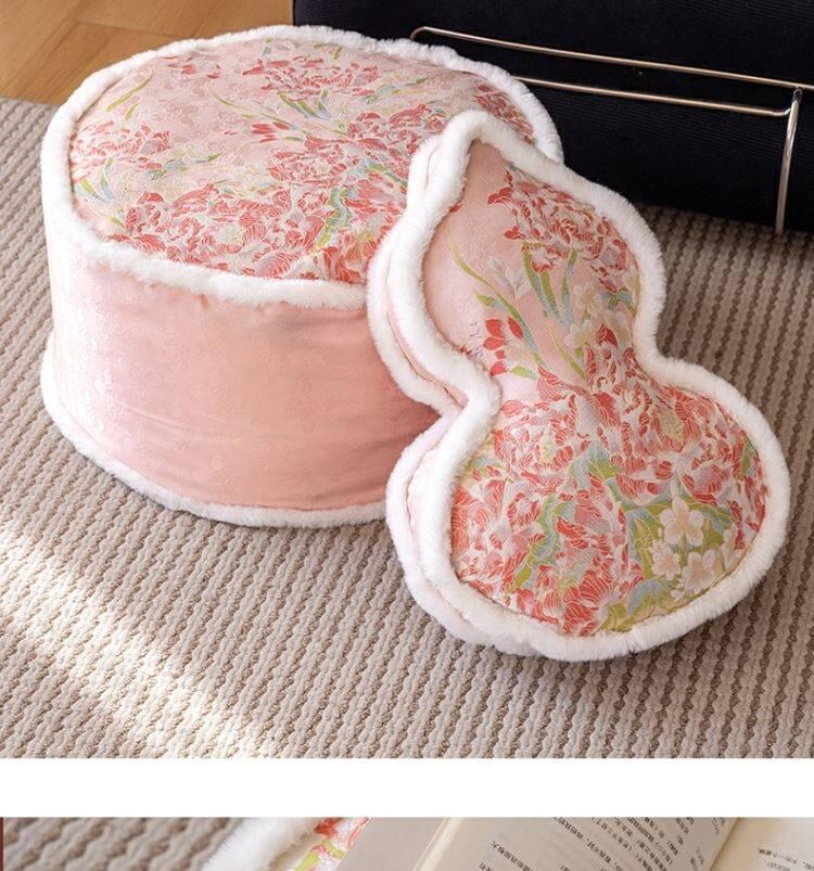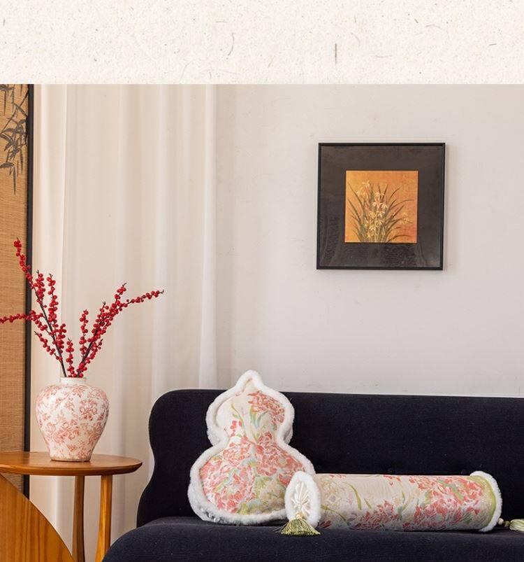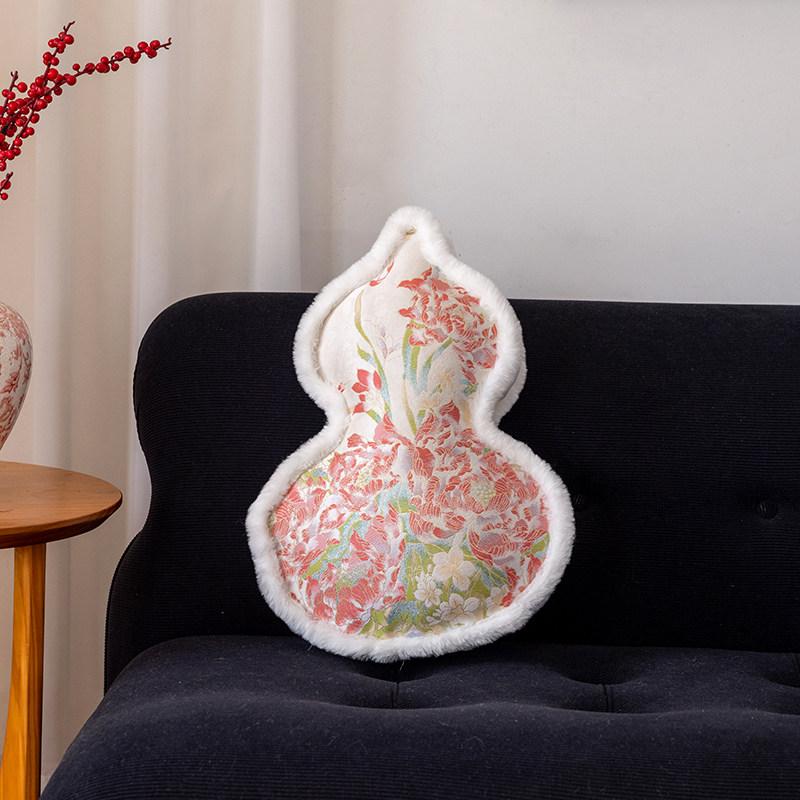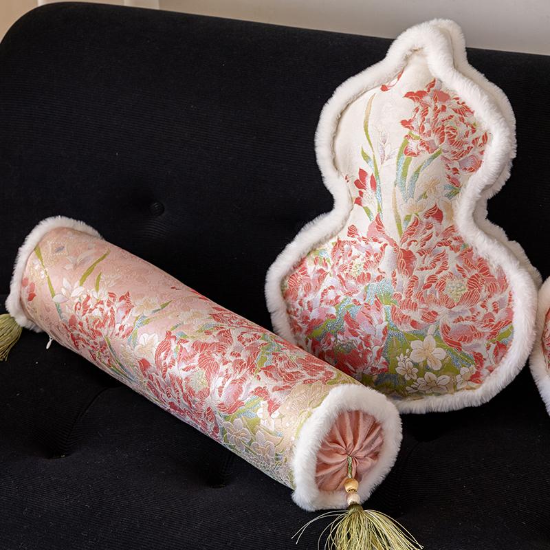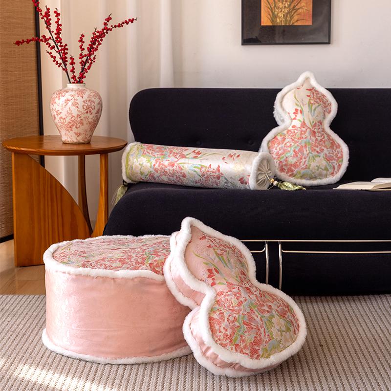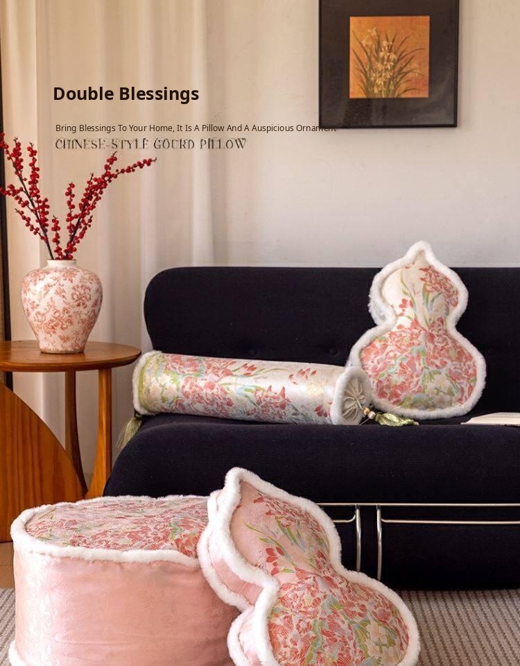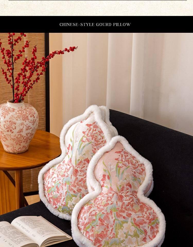 New Chinese Style Pink Gourd Pillow - Elegant Bedside Cushion for Princess-themed Bedrooms and Living Rooms, Featuring Peony-shaped Design, Perfect for Sofa and Decorative Support.