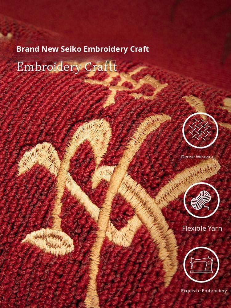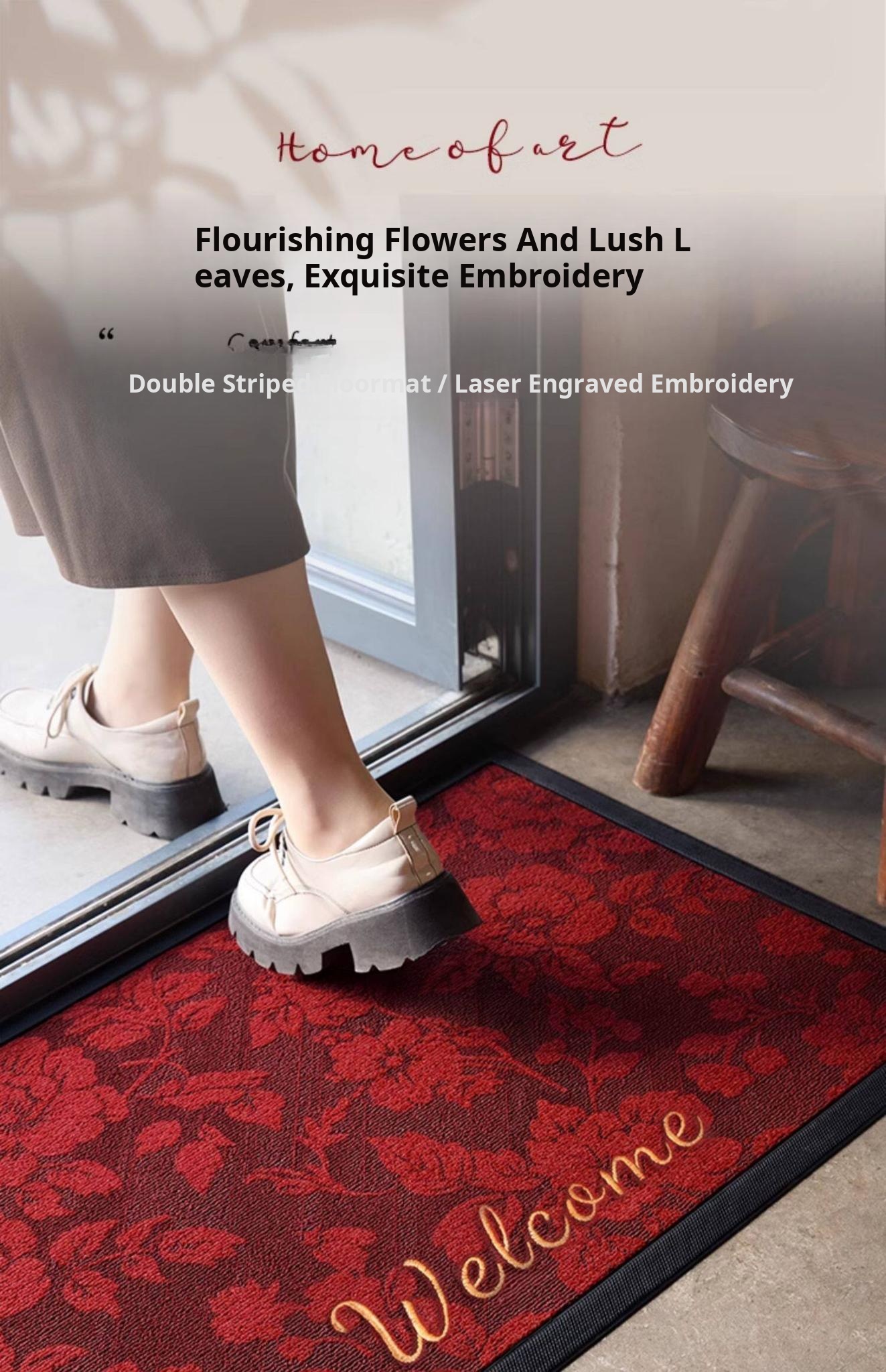 Flower and Leaf Red Carved Embroidered Floor Mat