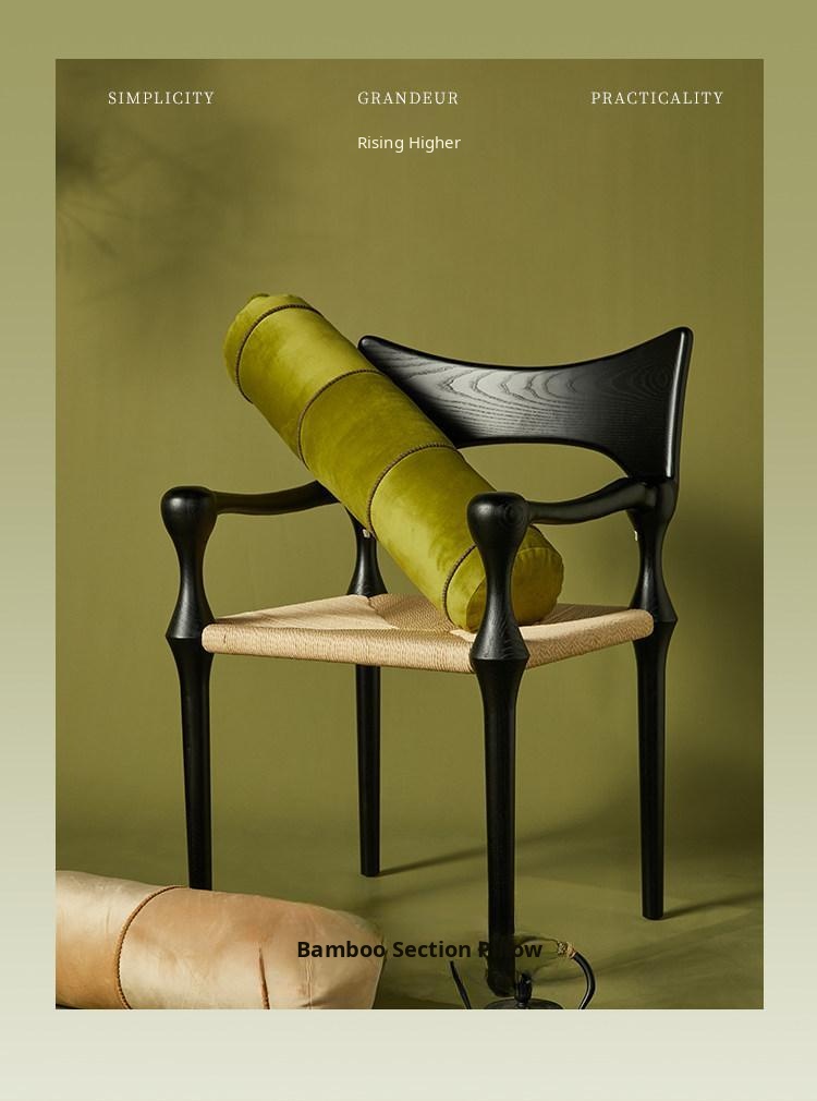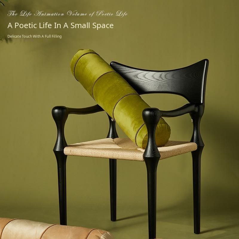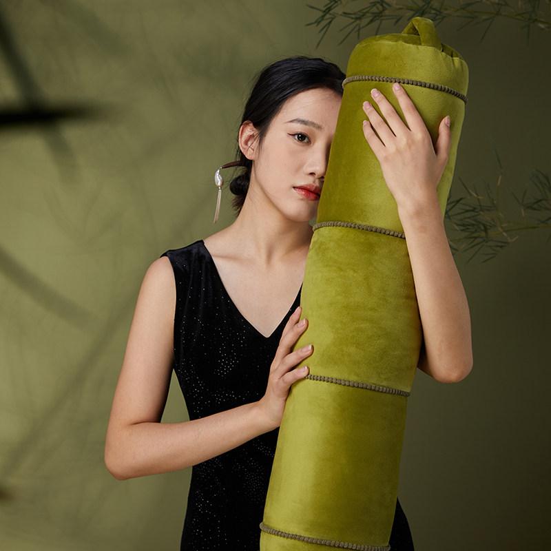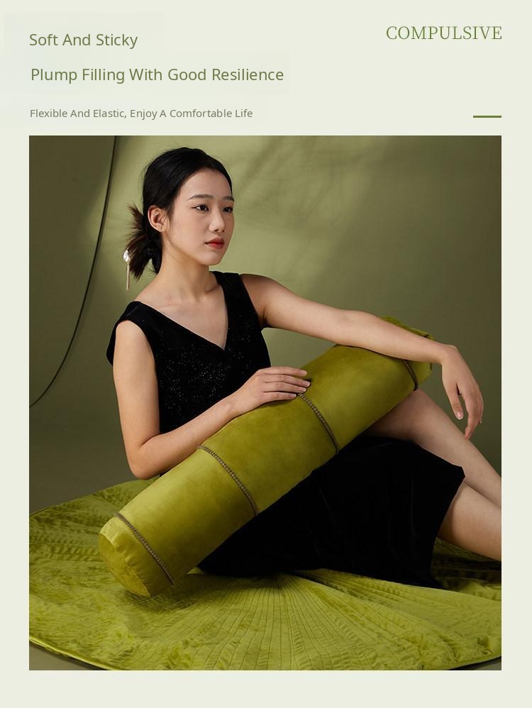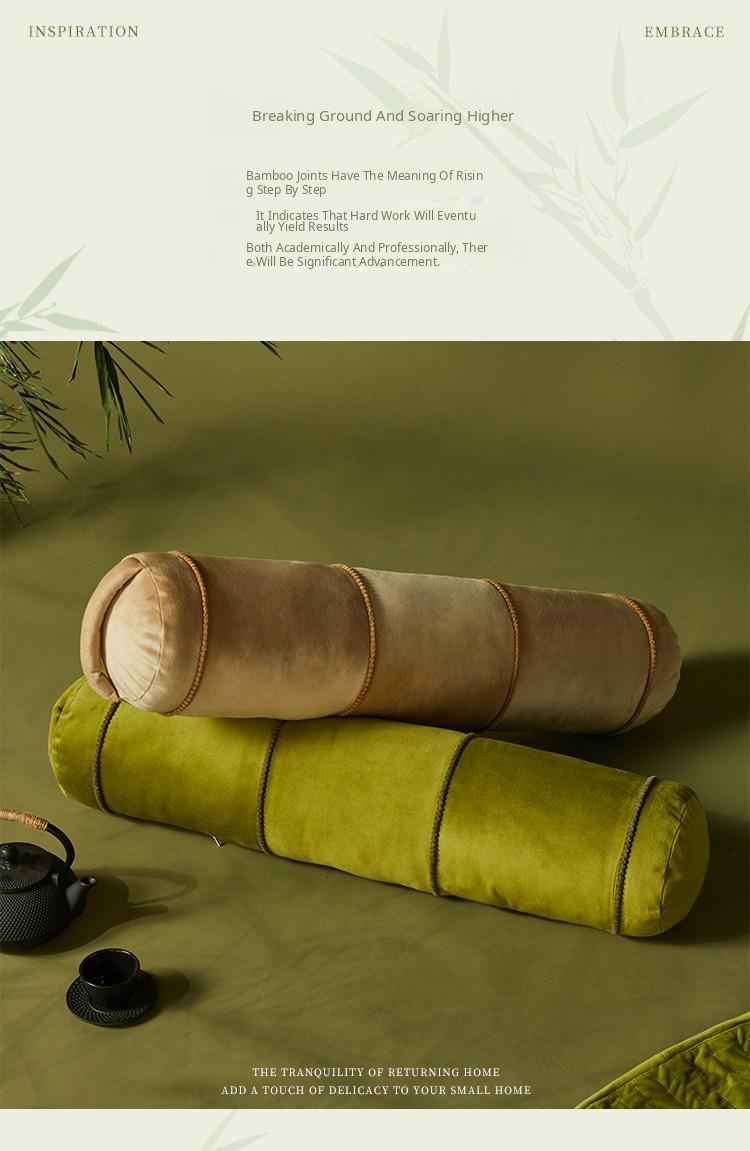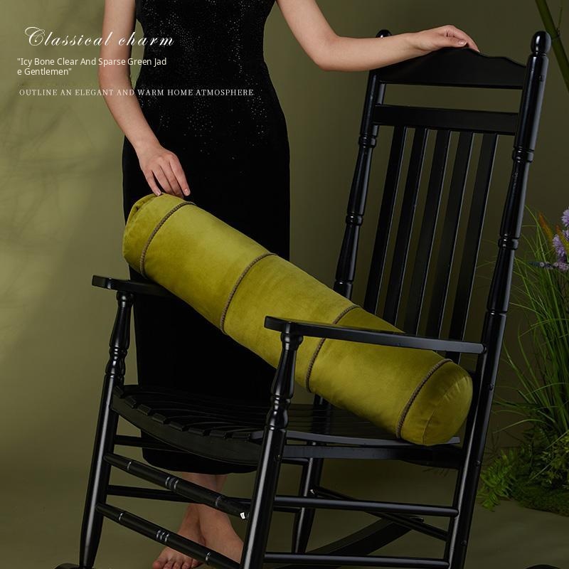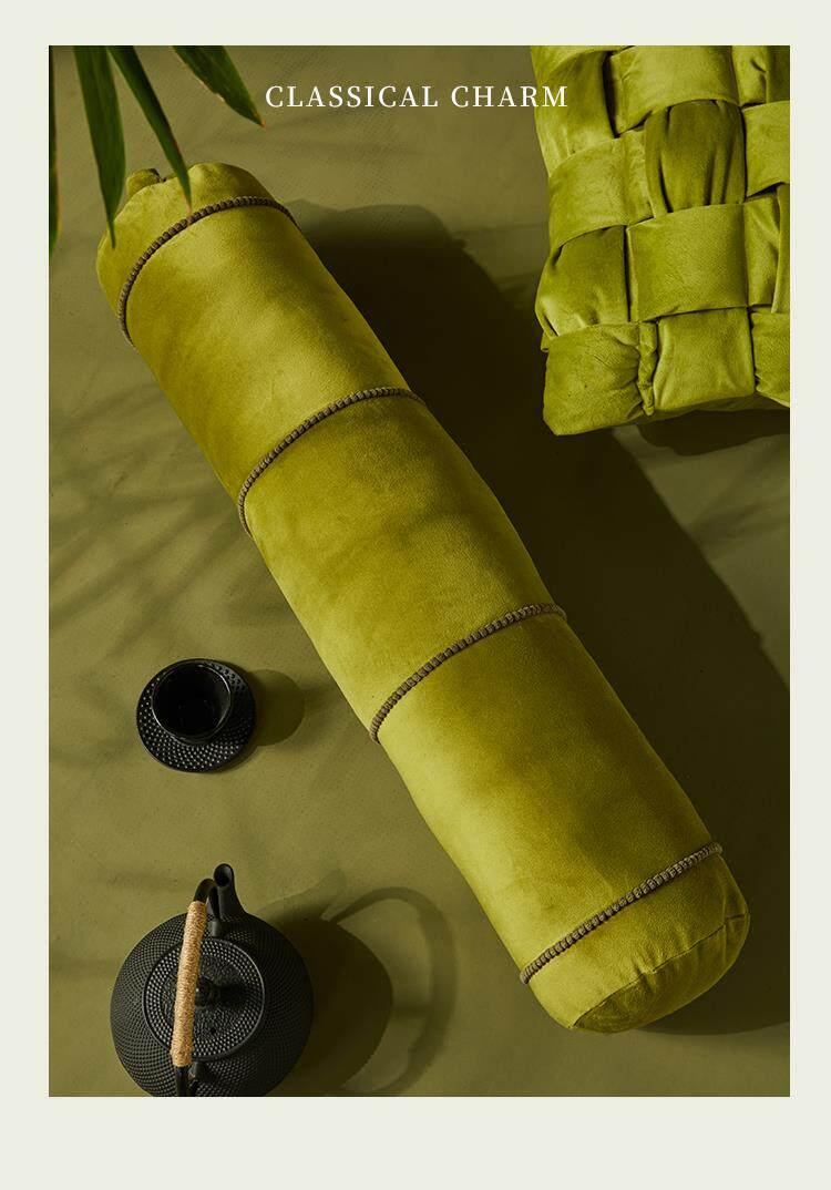 New Chinese Style Round Rectangular Pillow - Green Chinese Aesthetic Bedside Backrest Cushion for Living Room Sofa and Armrest Support