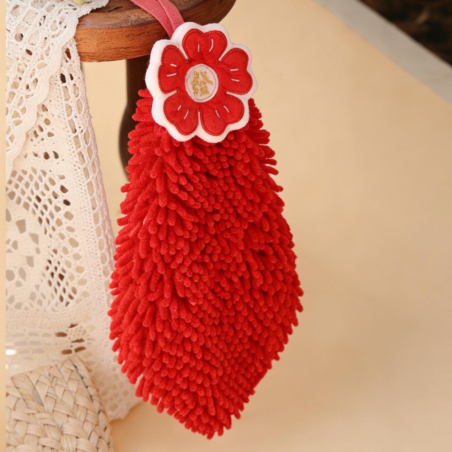 [Red Velvet Tianxi Coral Velvet Embroidered Hand Towel](46 X 13.78 in)
