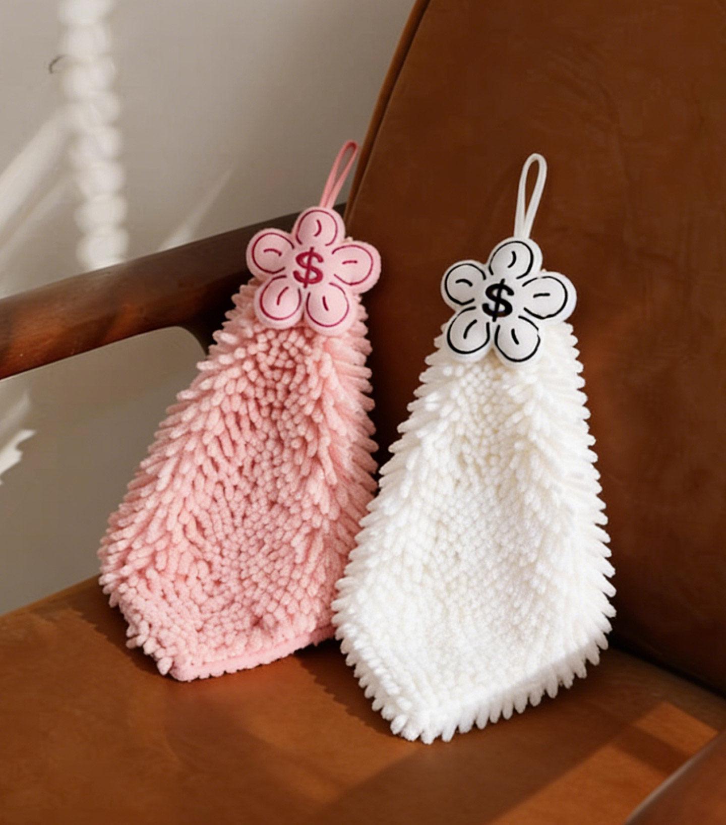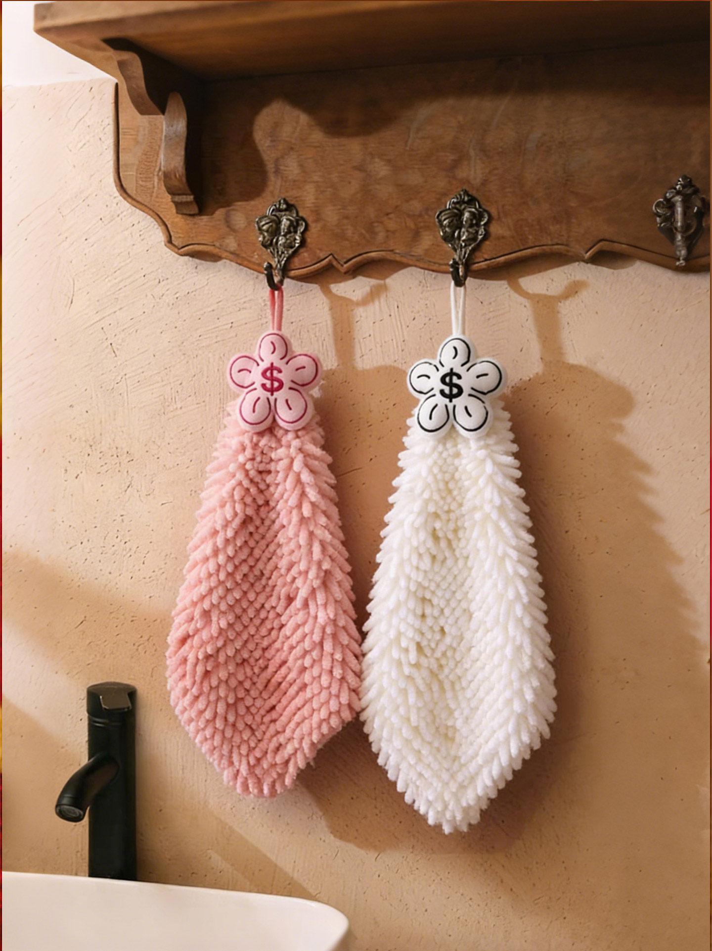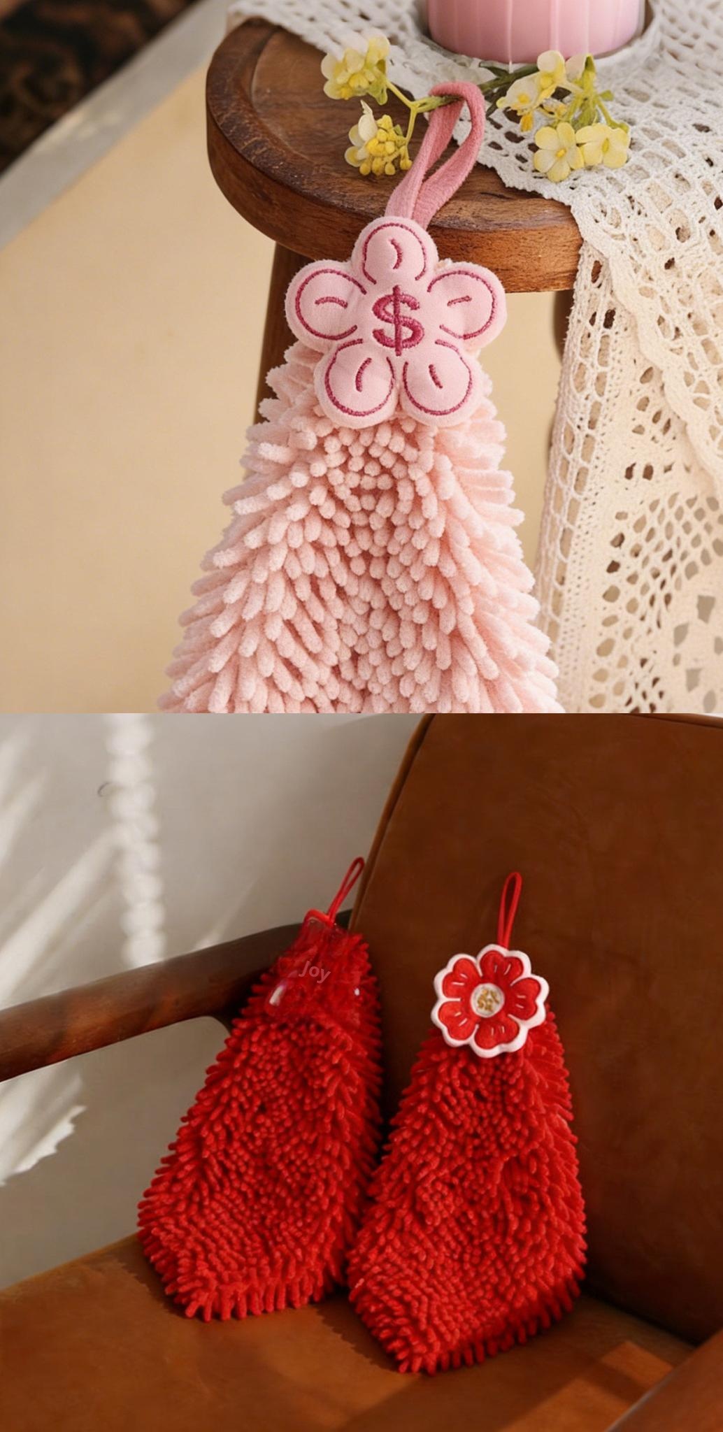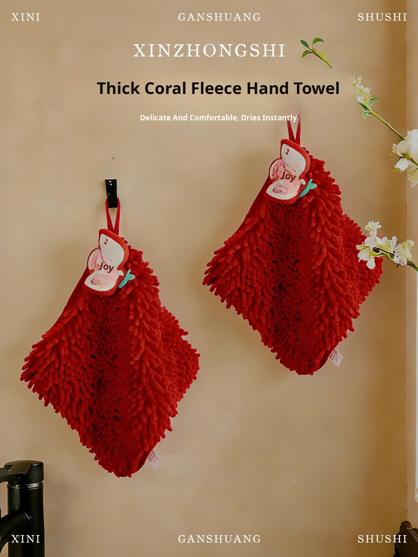 New Year Cute Coral Fleece Hanging Hand Towels - Stylish, Thick, Super Absorbent, Odor-Resistant Kitchen and Bathroom Towels