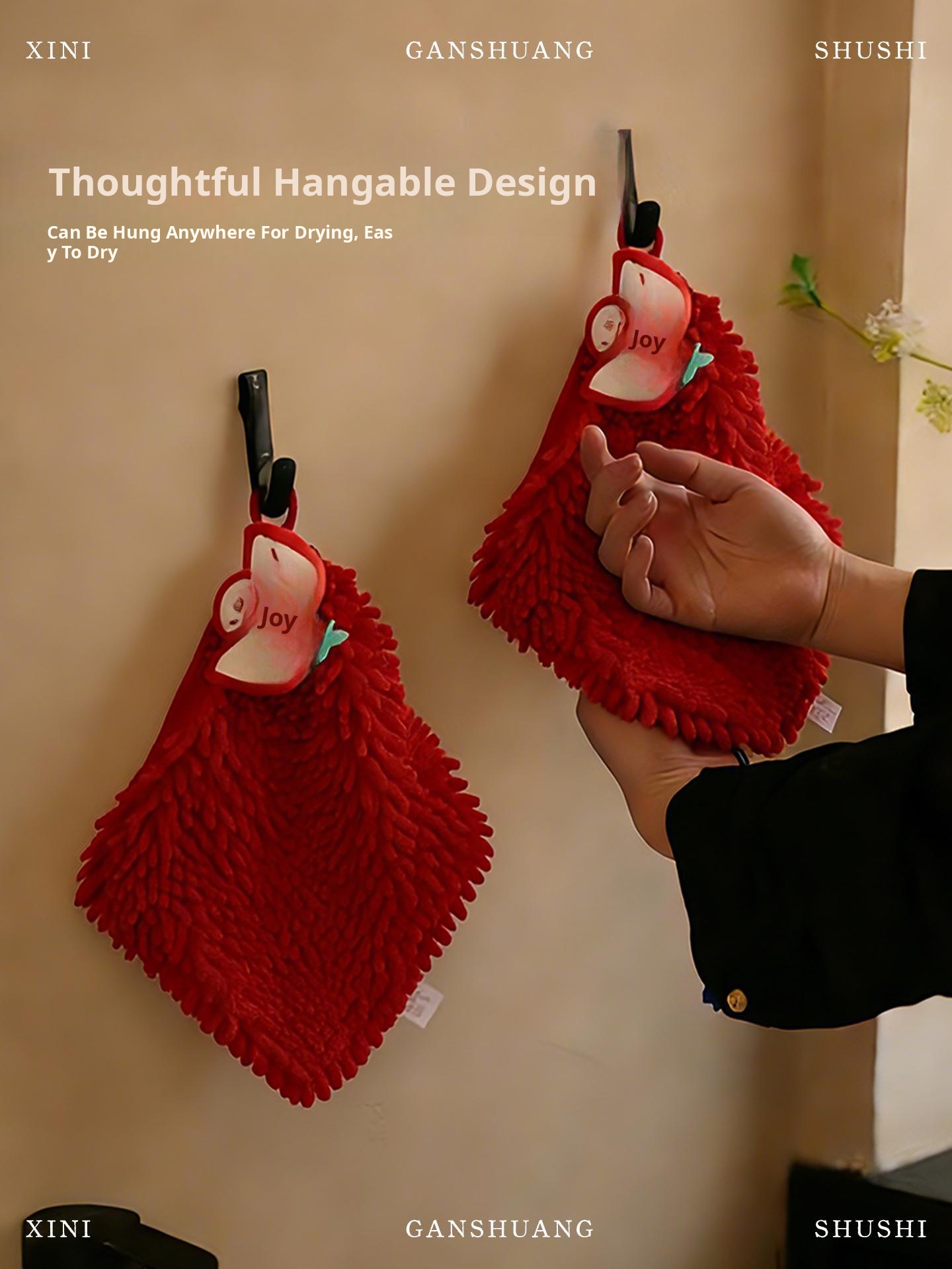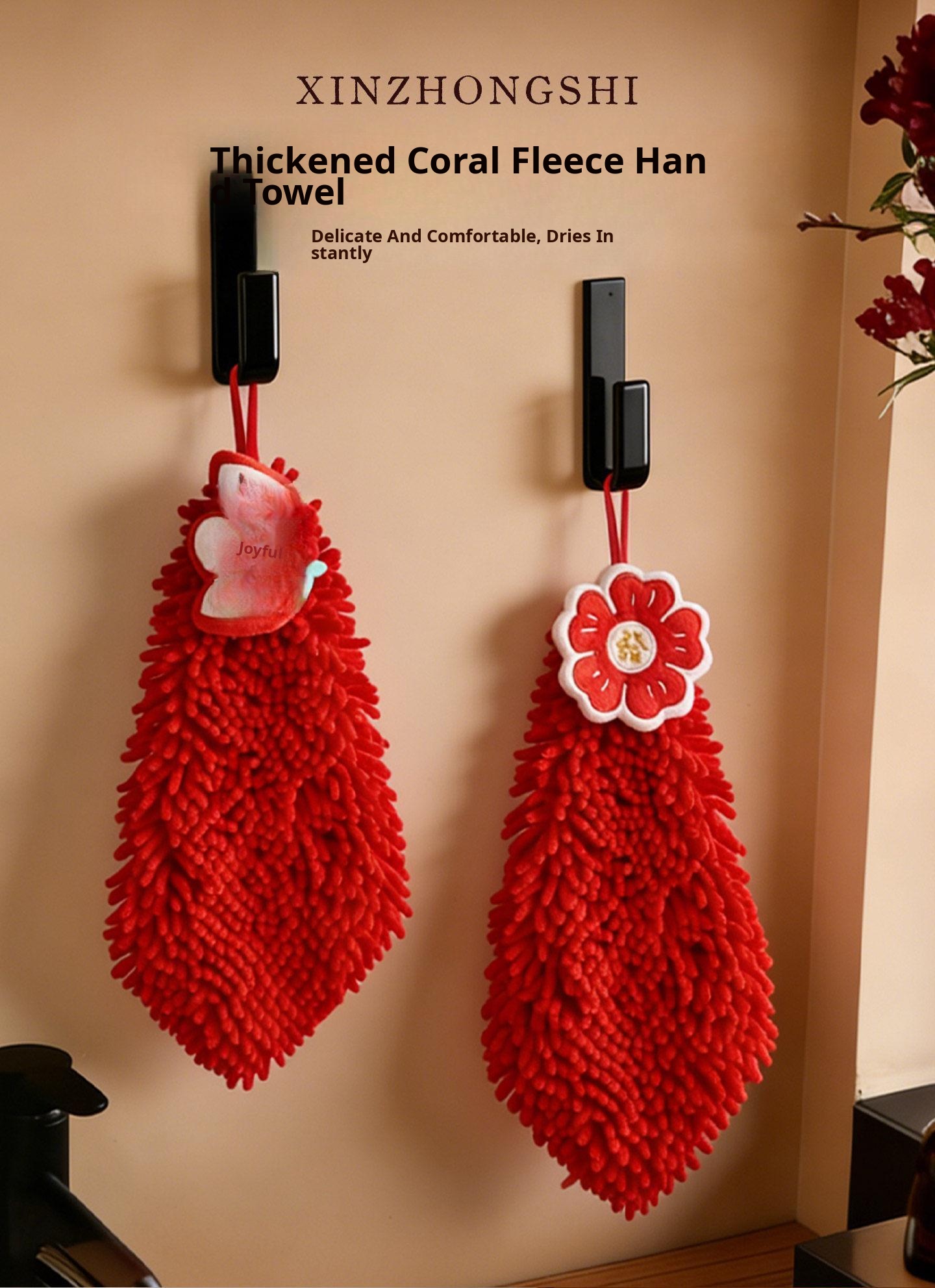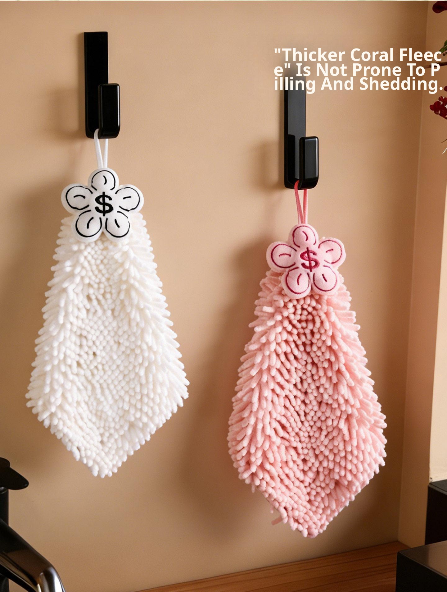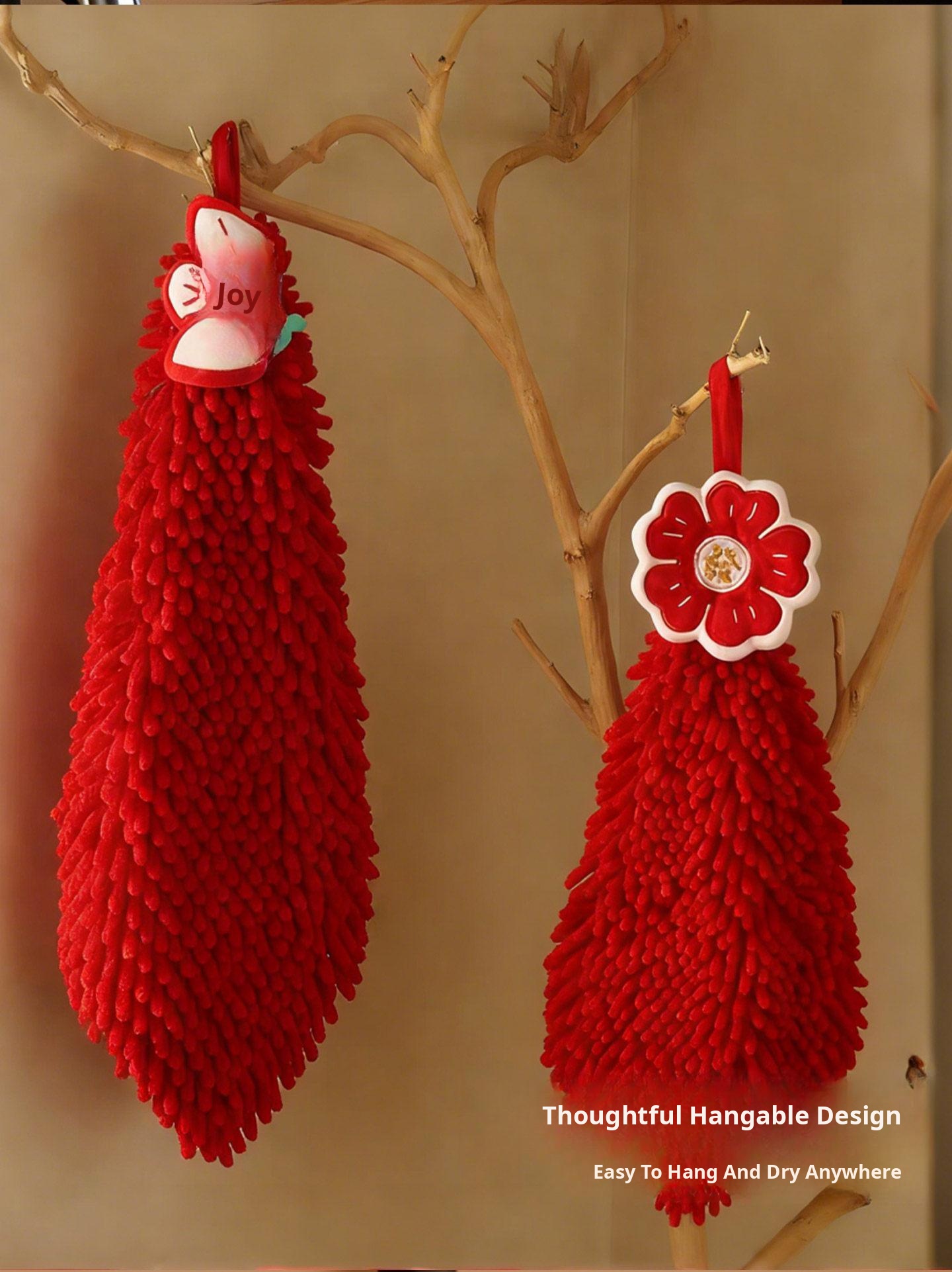 New Year Cute Coral Fleece Hanging Hand Towels - Stylish, Thick, Super Absorbent, Odor-Resistant Kitchen and Bathroom Towels