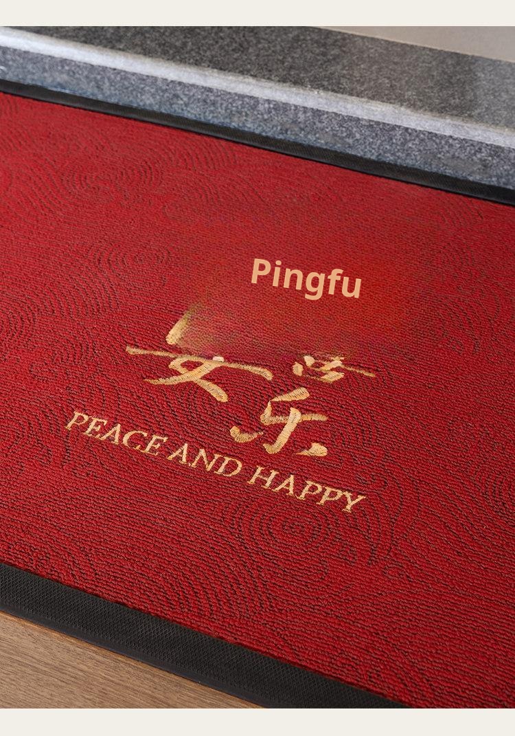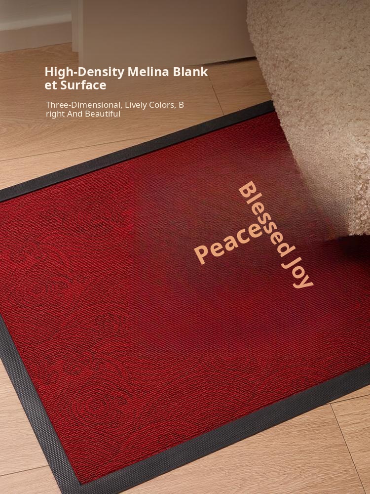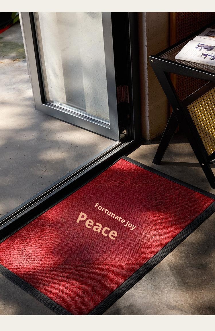 Peace, Joy and Blessing Red Carved and Embroidered Floor Mat