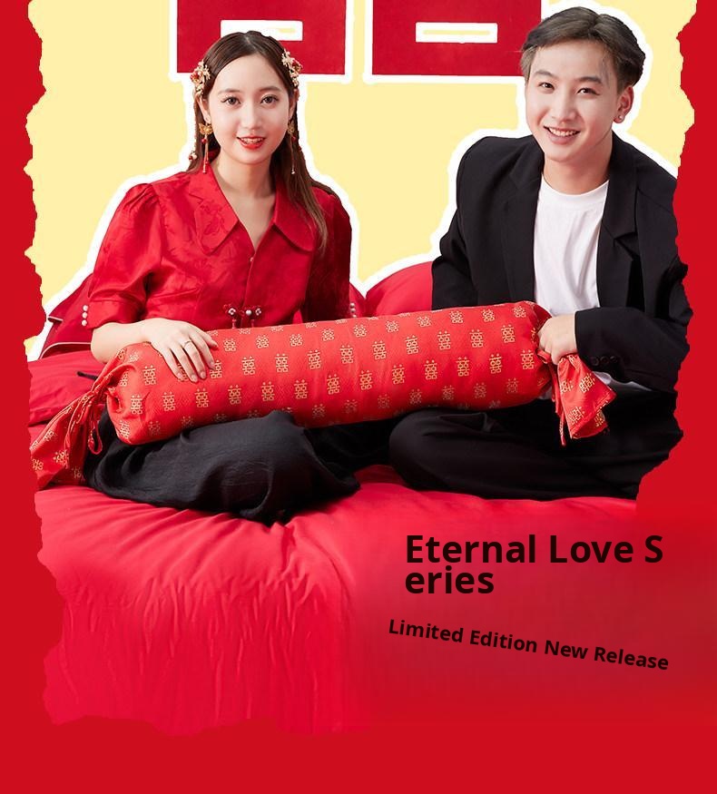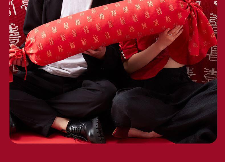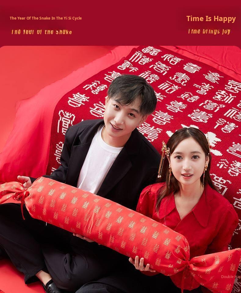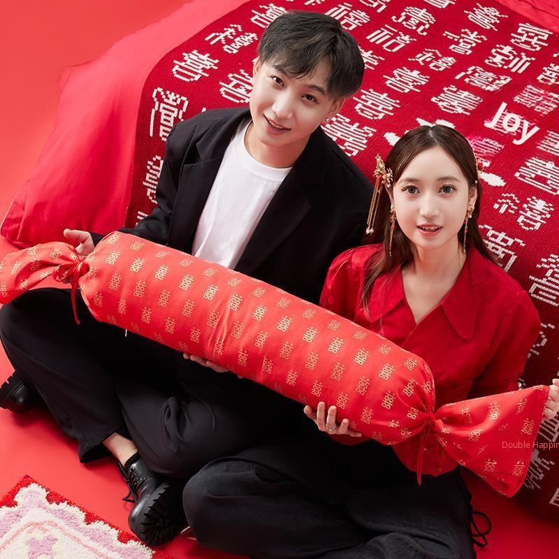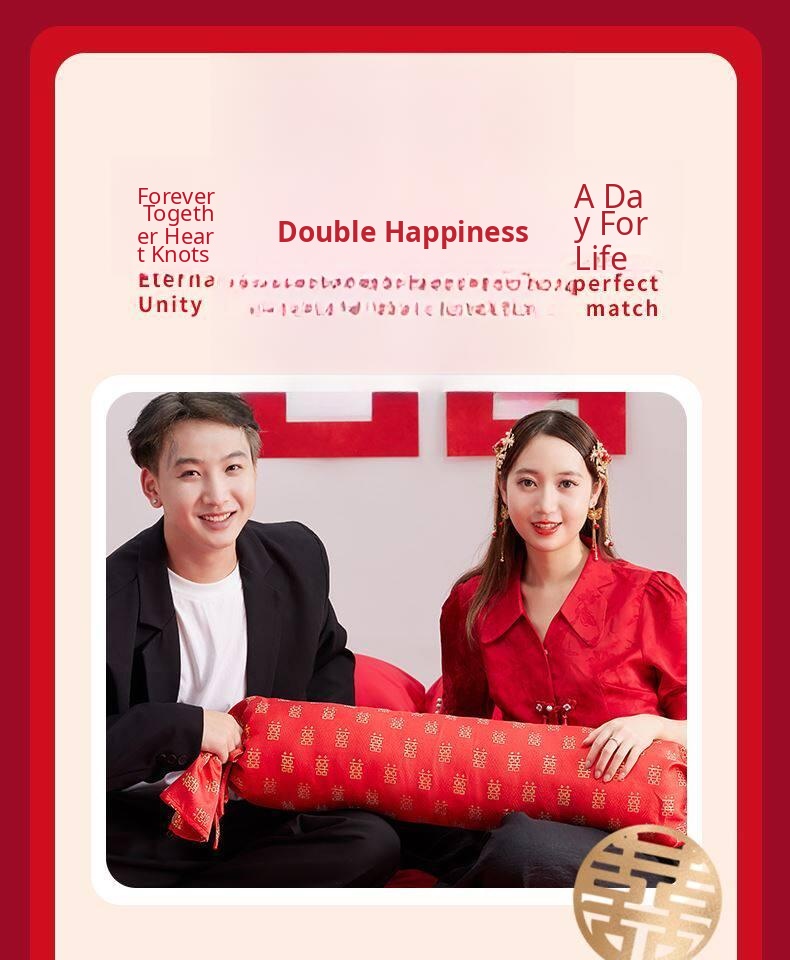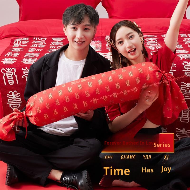 Traditional Chinese Style Festive Red Long Pillow Cover - Perfect for Wedding Decor, Bed Atmosphere, and Sofa Cushion with Double Happiness Emblem